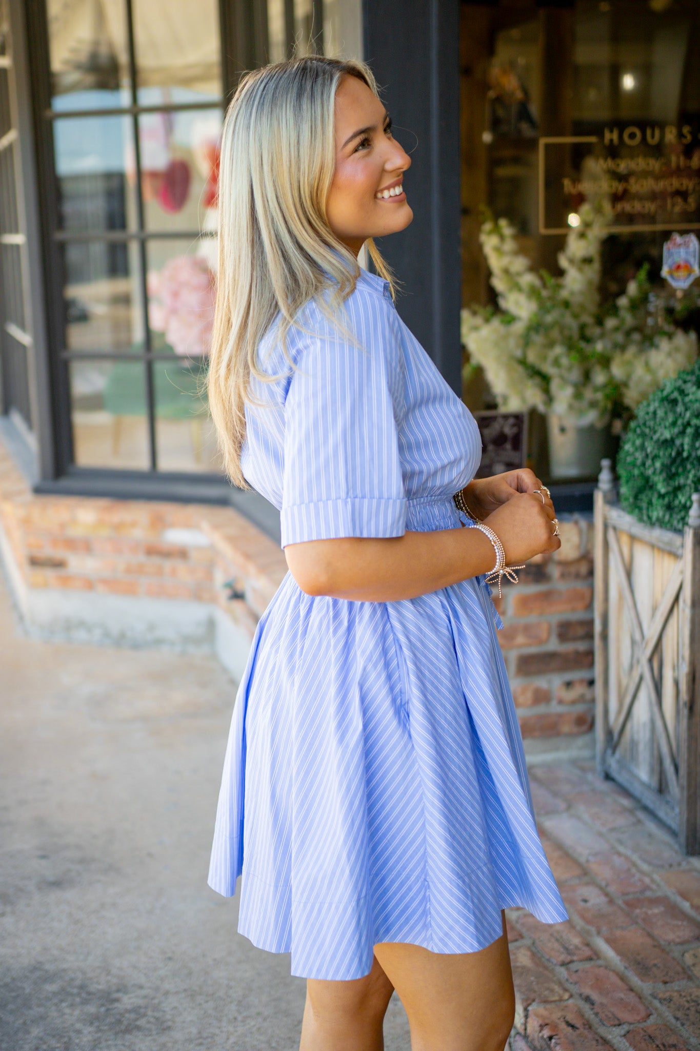 Effortlessly chic and ready for anything, this striped mini dress pairs bold style with everyday comfort. The elasticated waist with drawstring keeps you perfectly fitted, while front buttons and side pockets add practical flair. Crafted from lightweight woven fabric with a lined interior, it's non-sheer and designed to move with you. Perfect for casual outings, weekend adventures, or laid-back days when you want to look put-together without trying too hard.