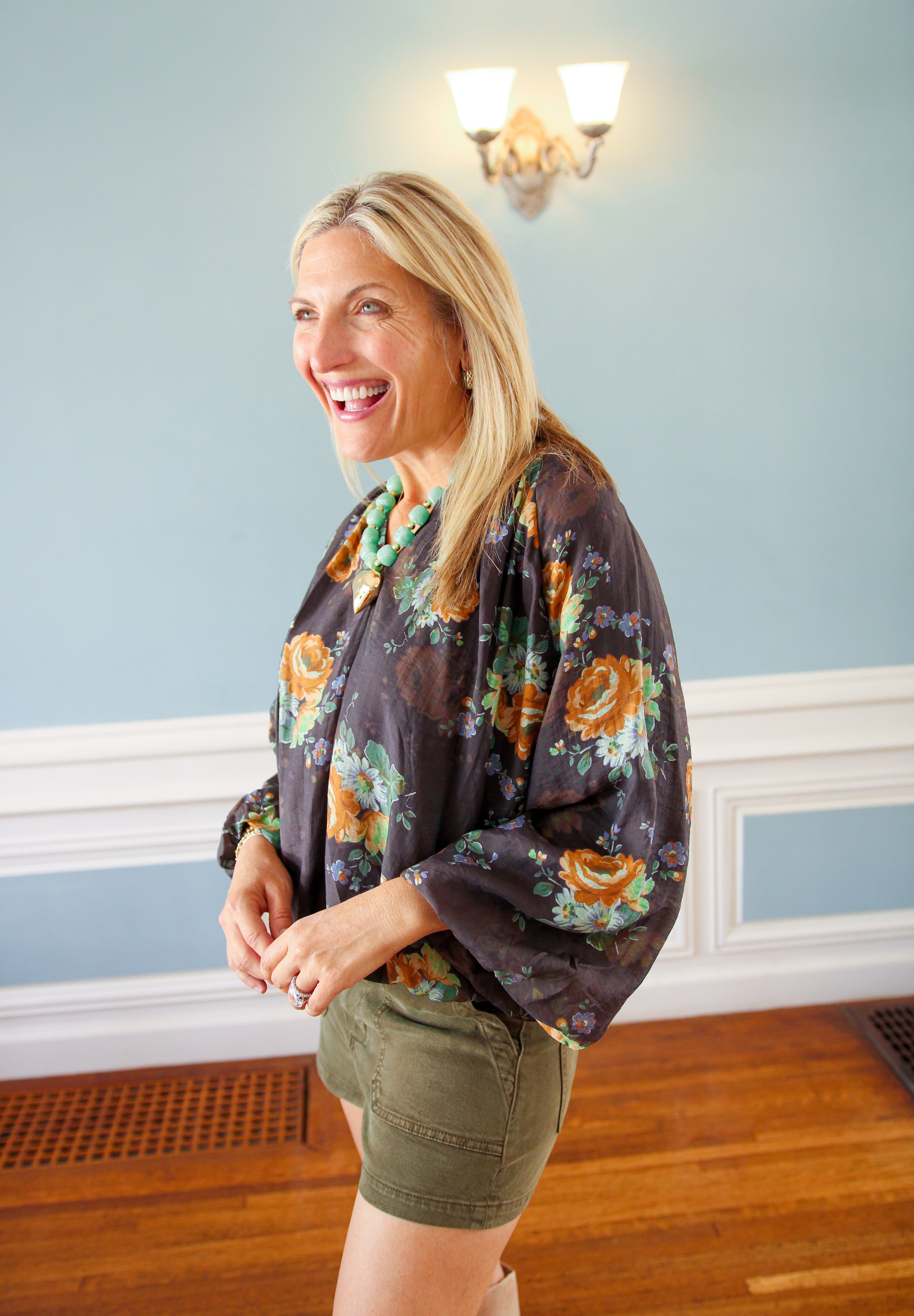 Bring a touch of whimsy to your wardrobe with the Autumn Breeze Floral Top in warm brown hues. This lightweight woven top features long puff sleeves and a delicate floral print that dances with every move. The shirred neckline adds a flirty detail, while the soft lining keeps it comfortable and just the right amount of semi-sheer. Perfect for layering or wearing solo, it’s the playful piece your closet’s been waiting for.