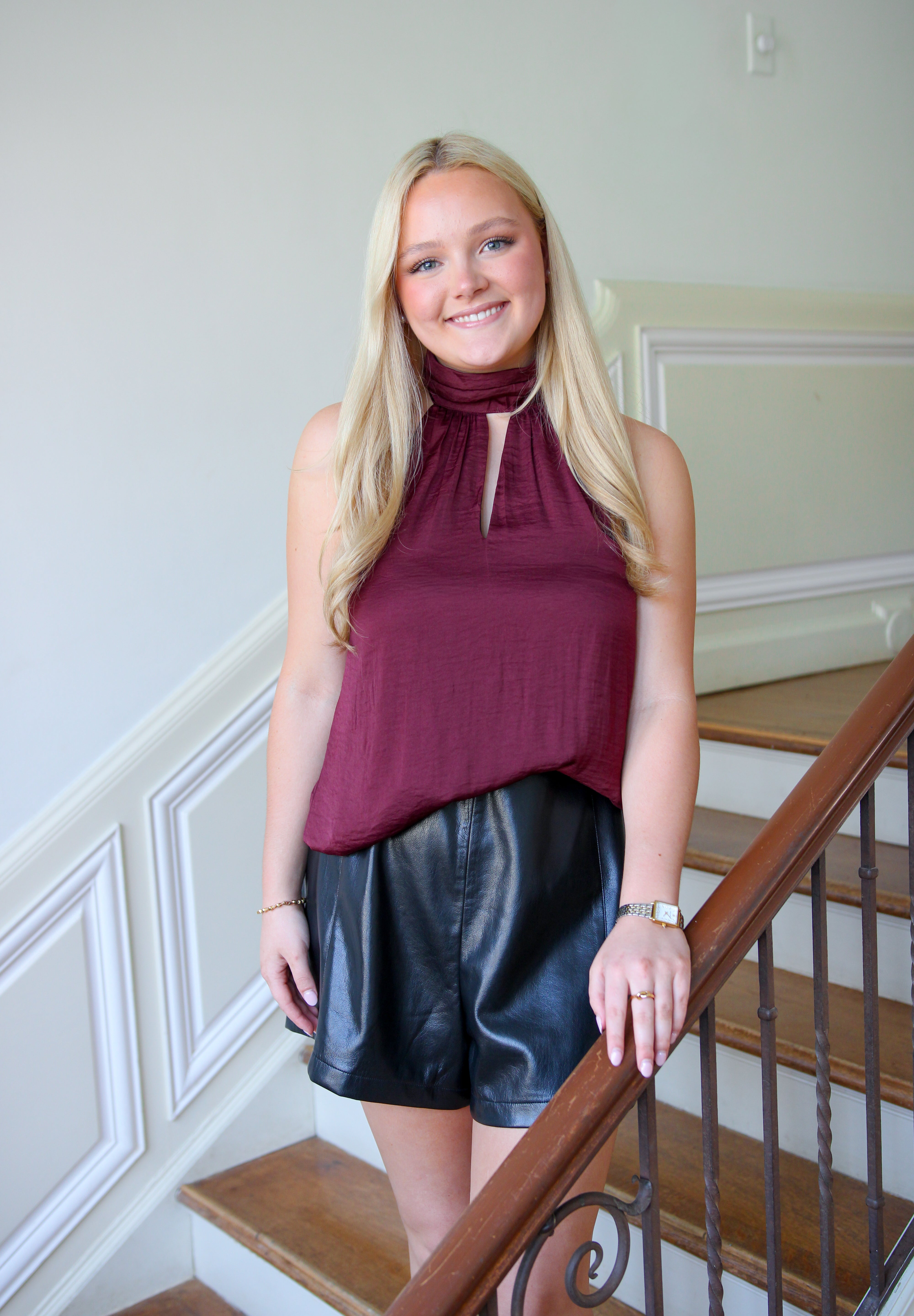 The Galilea Top in rich burgundy is your new go-to for effortless elegance. This silky satin beauty features a chic high neckline and a flirty keyhole cutout that adds just the right amount of intrigue. Fully lined for comfort and confidence, it drapes beautifully against your skin with a luxurious feel. Perfect for date night, brunch, or whenever you want to feel absolutely fabulous.