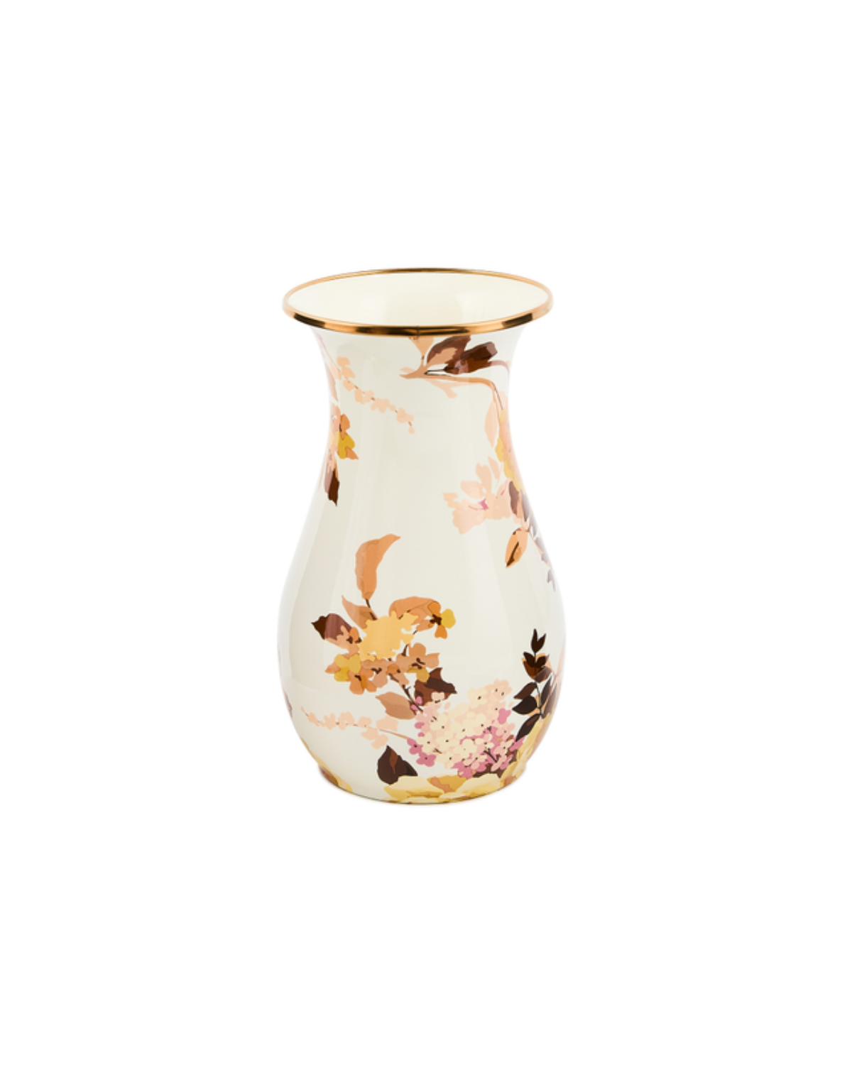 Farm-fresh and inspired by traditional glass milk jugs, the Wild Rose White Tall Vase is the kind of vase that’s just right for a casual wildflower bouquet, cherry blossom branches, or pussywillow stalks. It features our hand-applied floral transfers on a steel underbody and is rimmed in bronzed stainless steel. Elegant, useful, and crafted in our signature style. Pair with pieces from Mocha Check or go Wild Rose all the way!6" dia., 10" tall, 96 oz. capacity