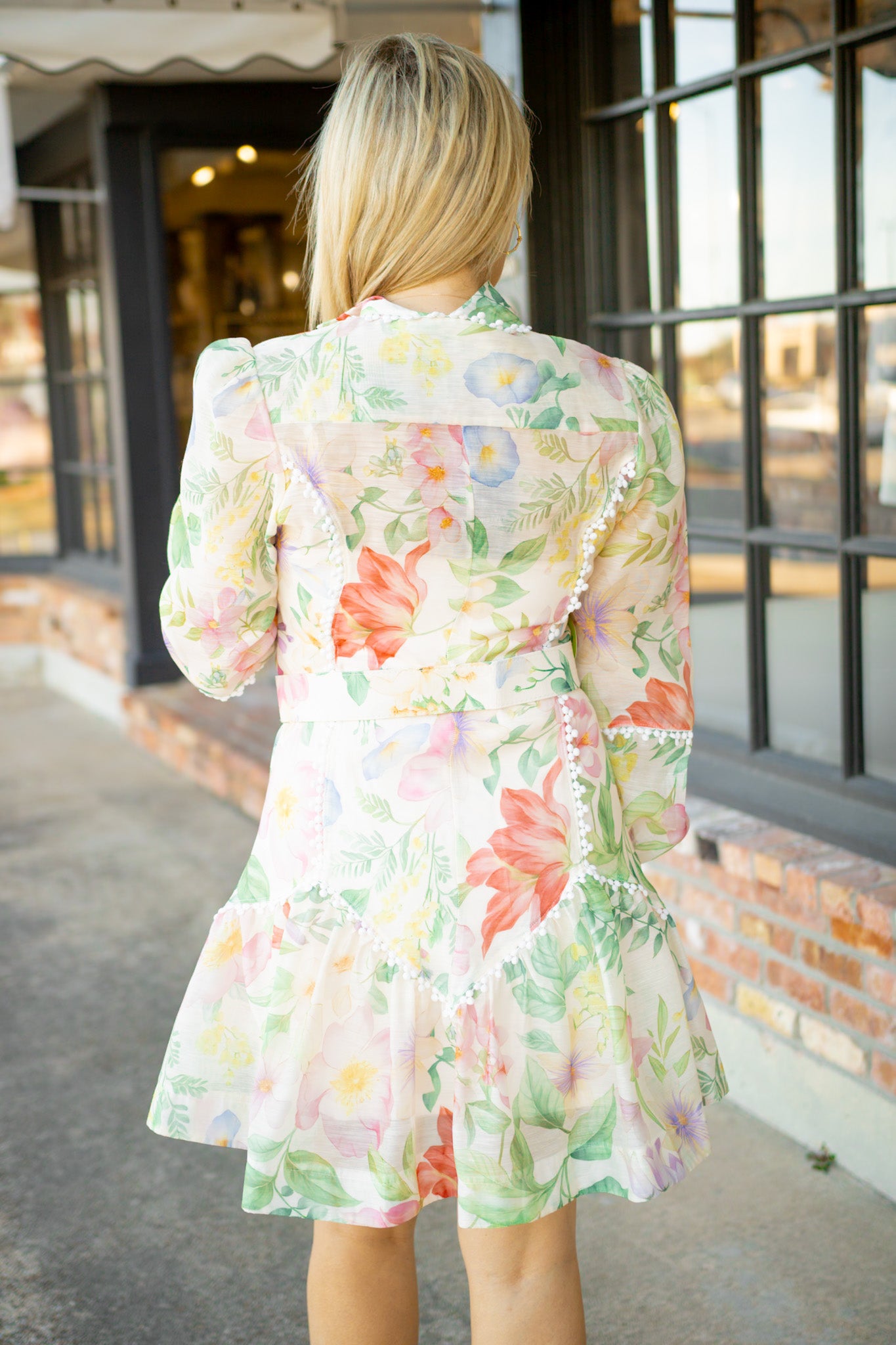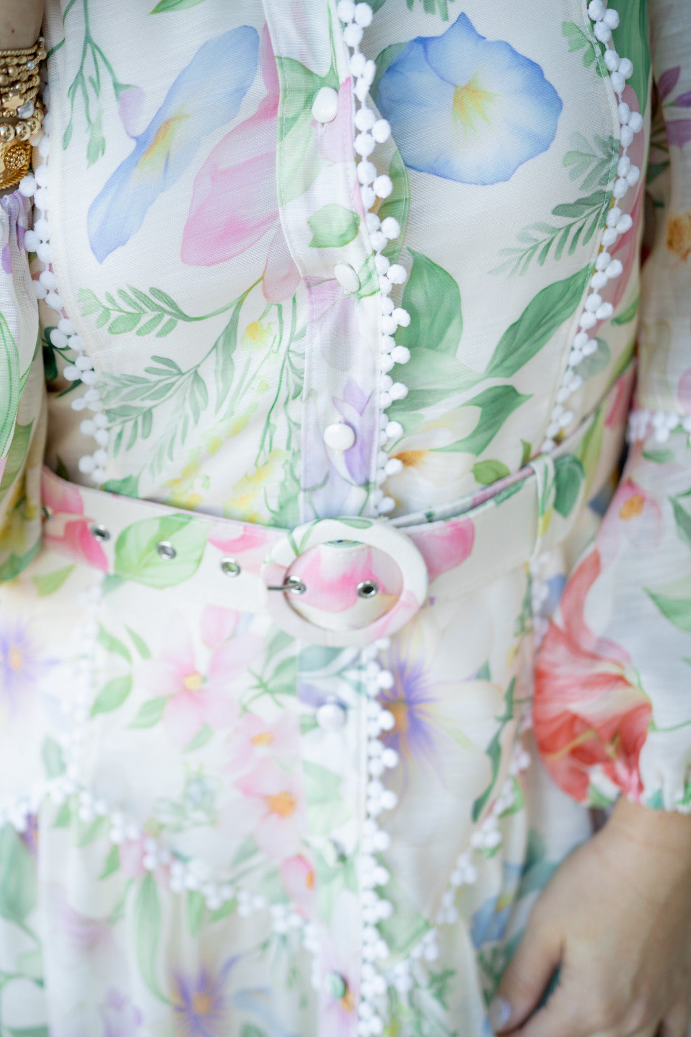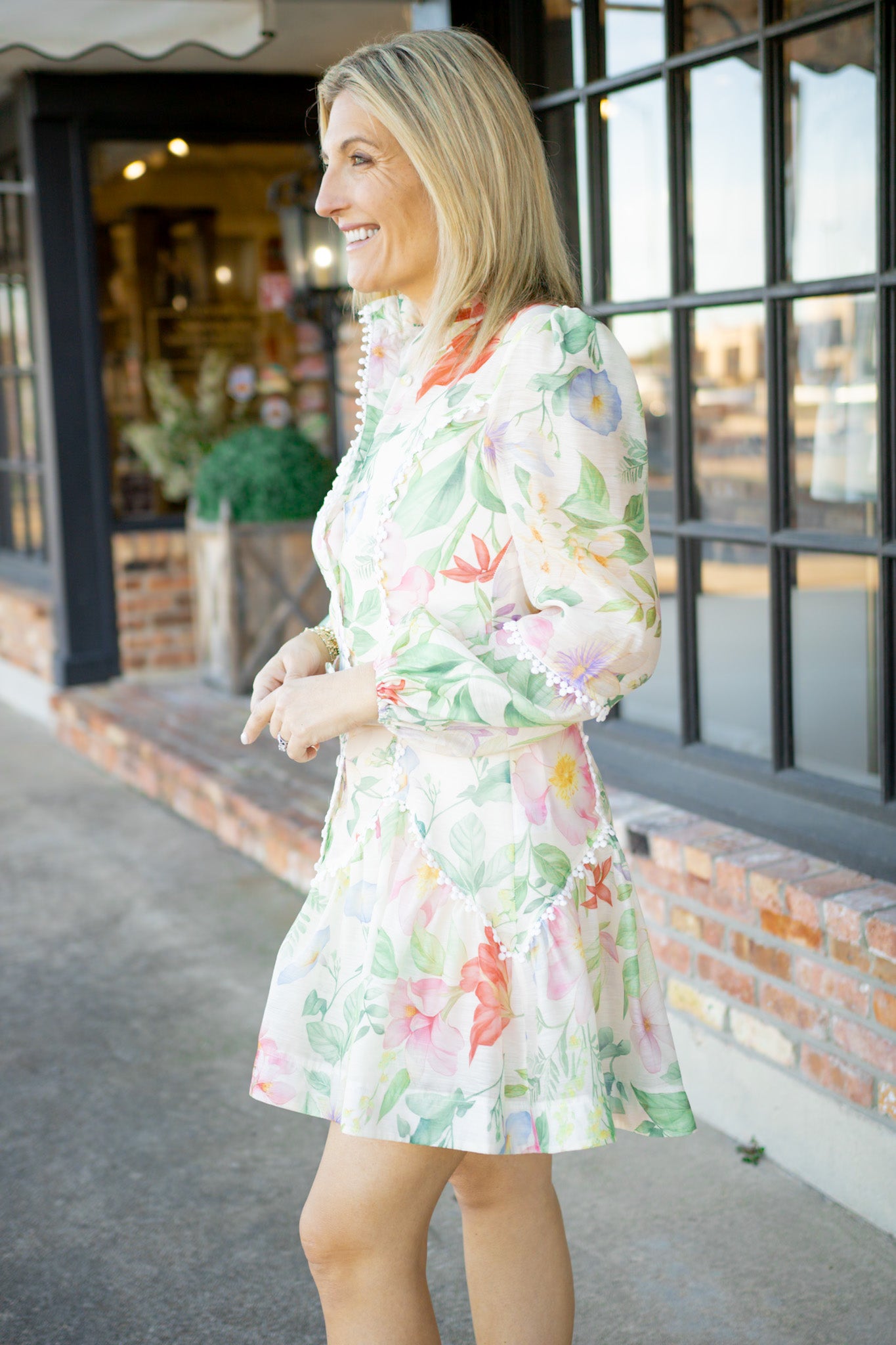 Slip into effortless style with this collarless button-up dress, adorned with gorgeous florals that celebrate your vibrant spirit. The removeable belt lets you cinch or skip it—dress it up or down depending on your mood. Lined separately for comfort and durability, this piece transitions seamlessly from brunch to evening plans. Perfect for anyone who believes in blooming boldly.
