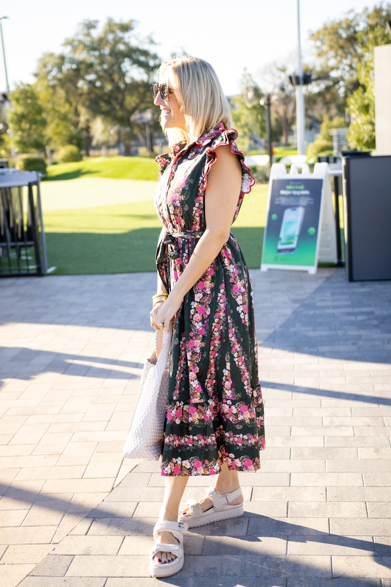 Mad Tea Scallop Midi Dress, Deep Green/ Pink Multi