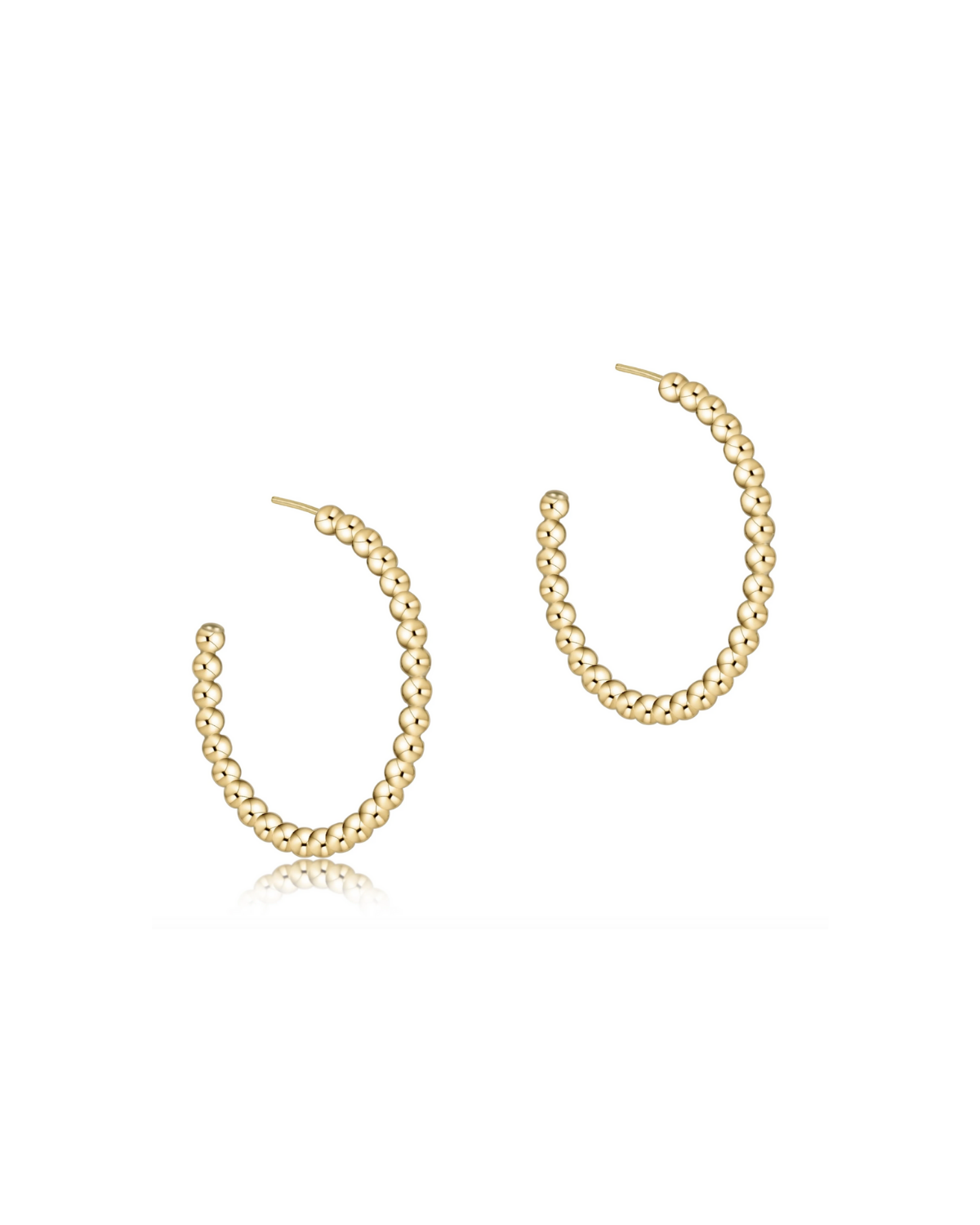 Beaded Classic 1.25" Post Hoop Earring, 3mm Gold