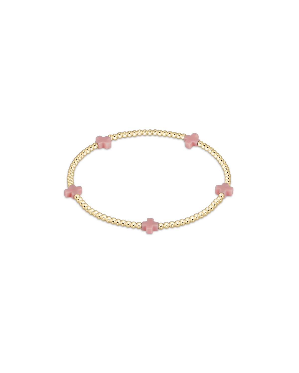 Signature Cross Small Gold Pattern 2mm Bead Bracelet, Pink