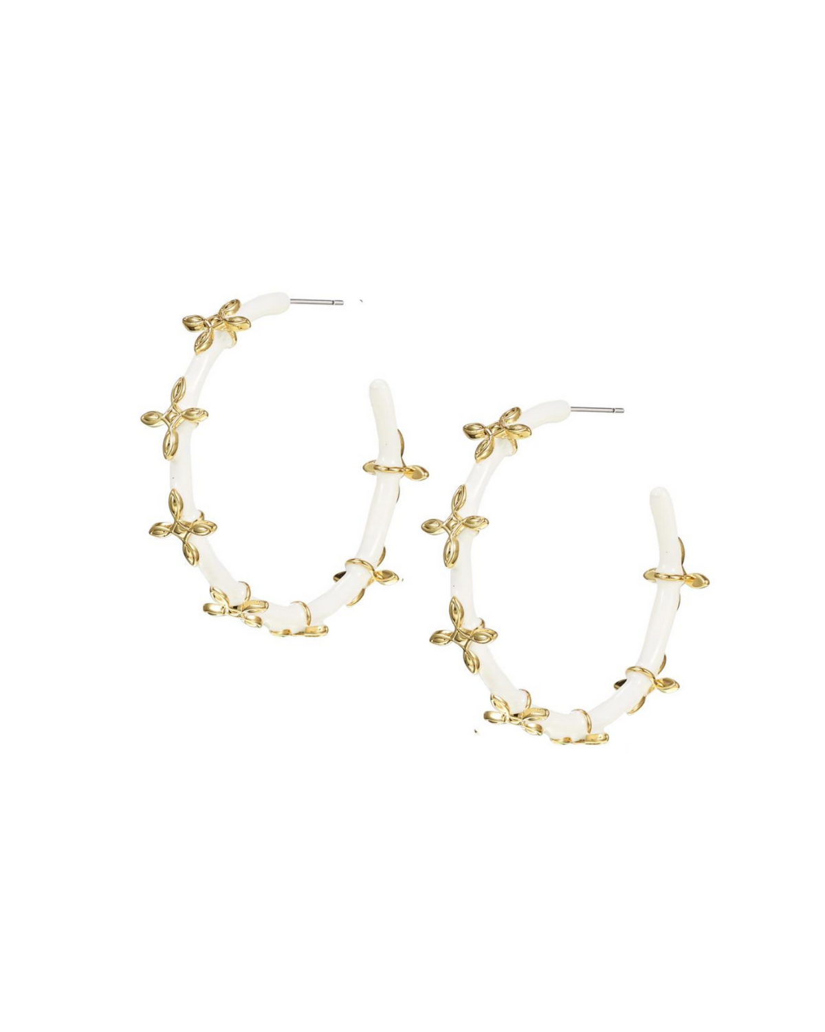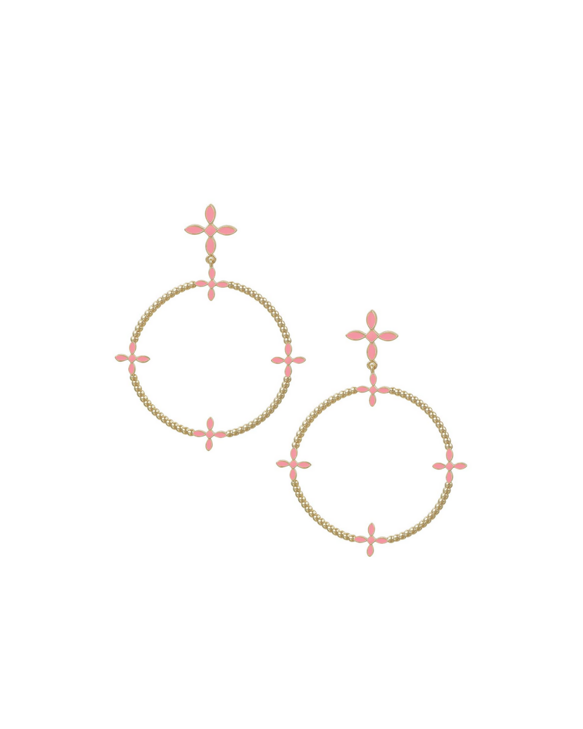 Bloom Mini Hoop Earrings, Light Pink Enamel