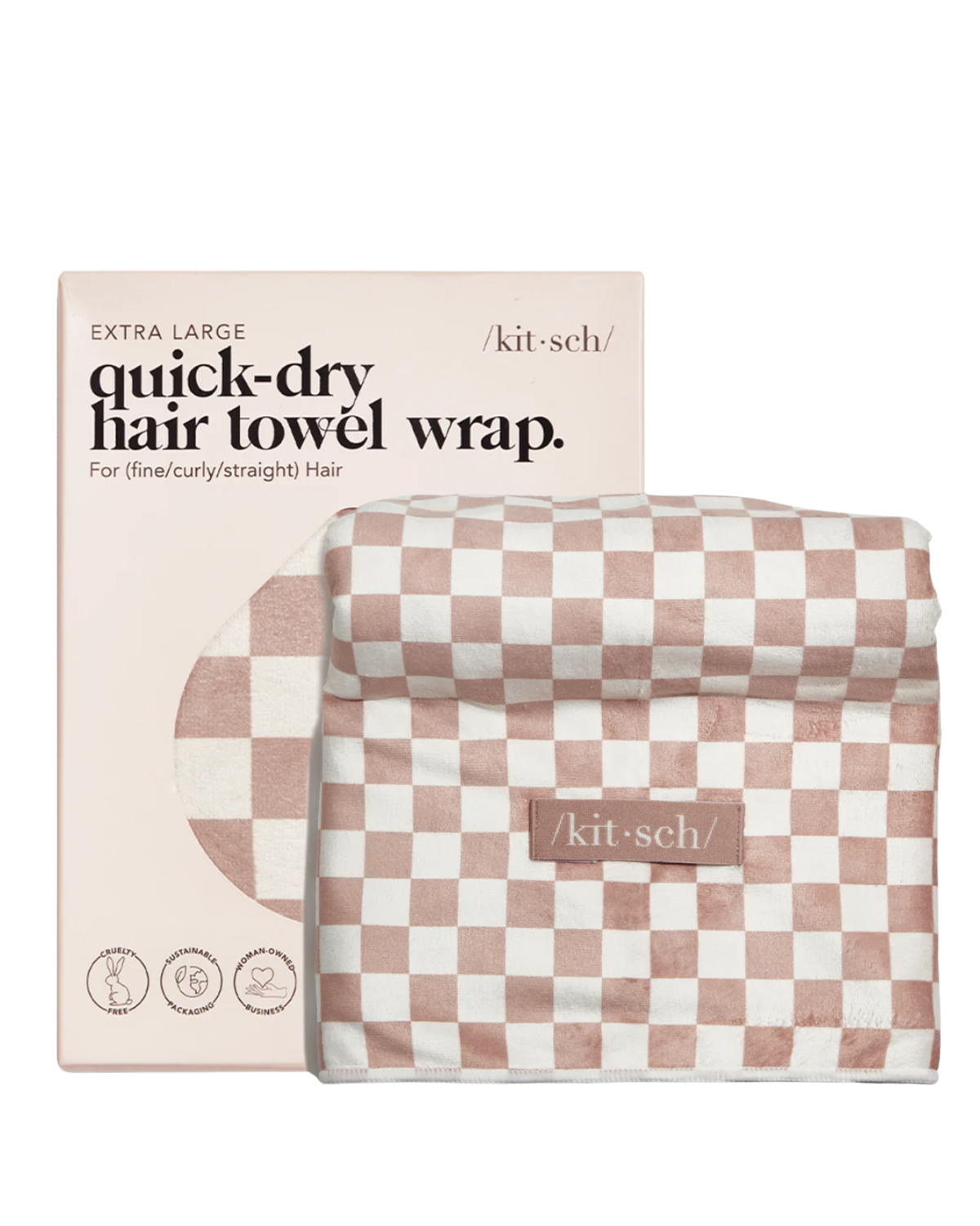 Extra Large Quick Dry Hair Towel Wrap, Terracotta Checker