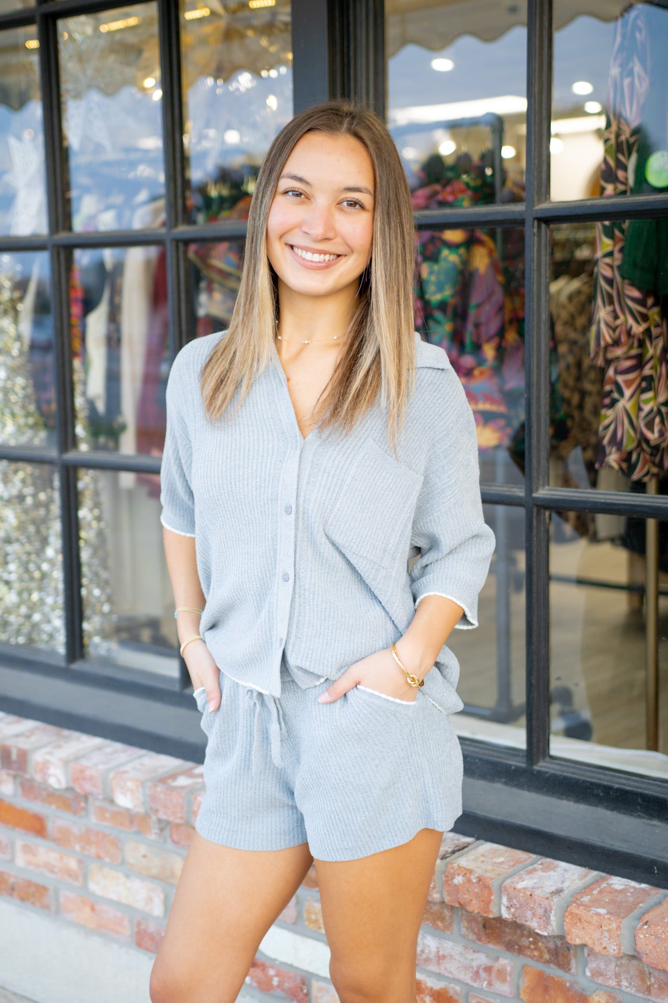 CozyChic Ultra Lite® Contrast Scallop Short Sleeve Shirt and Short Set, Moonbeam