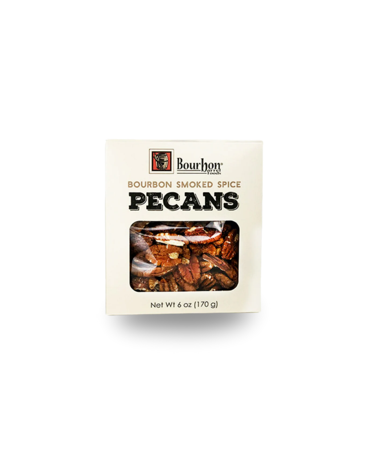 Sweet and savory pecans with a hint of spice. Perfect for cheese trays, salads and of course as an accompaniment to your favorite bourbon cocktail. These pecans are seasoned with Bourbon Smoked Salt, Bourbon Smoked Pepper, Bourbon Smoked Paprika, and Bourbon Smoked Chef's Blend.