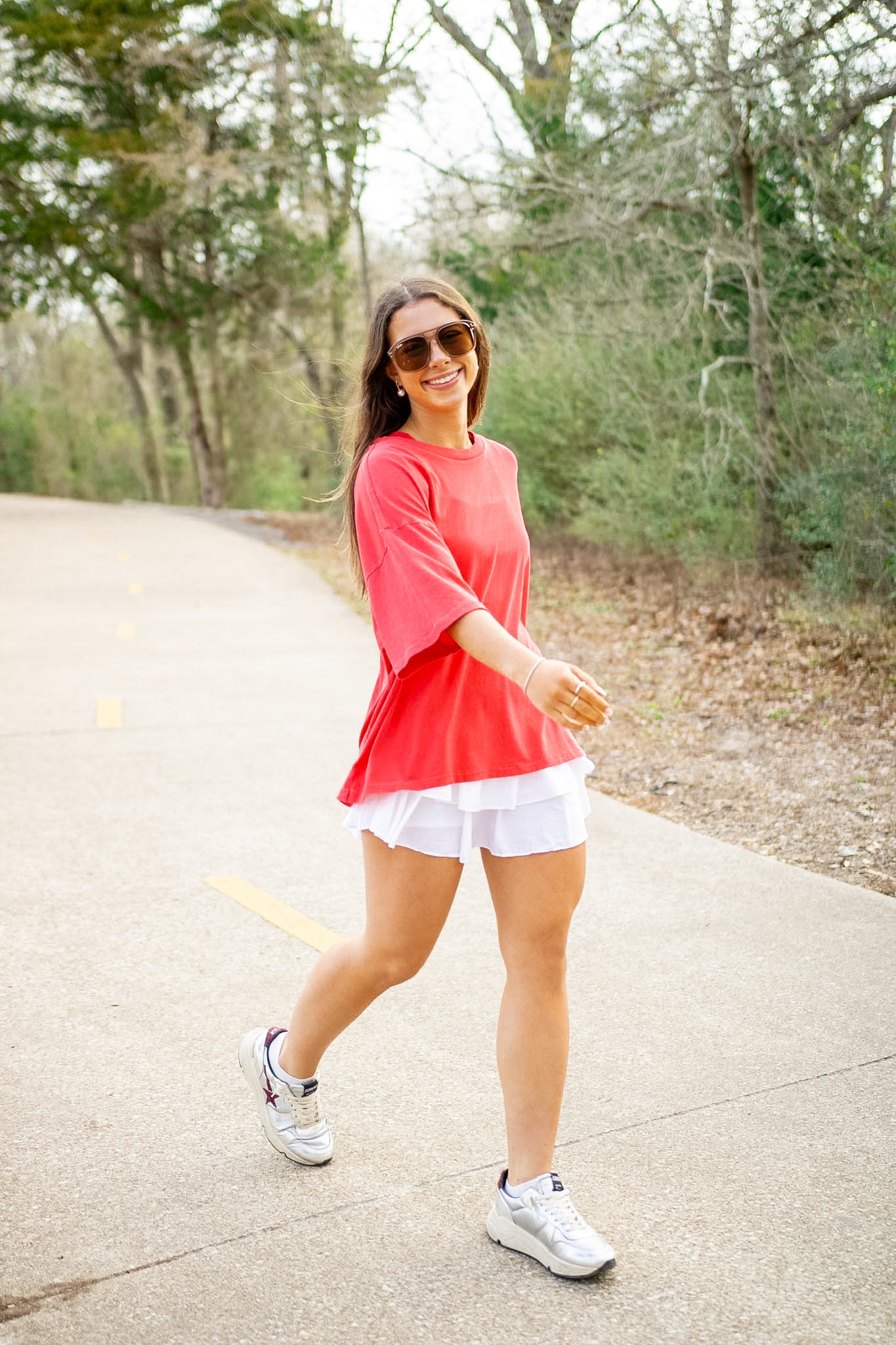 Features: Scoop neckline; dropped shoulders; slouchy, boxy fit