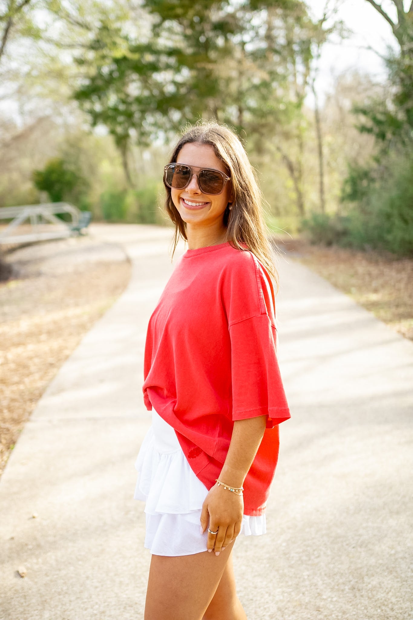 Just as cool as it is classic, this effortlessly essential tee is featured in a timeless short sleeve style and slouchy, slightly boxy silhouette with heavyweight fabrication for a super luxe style.