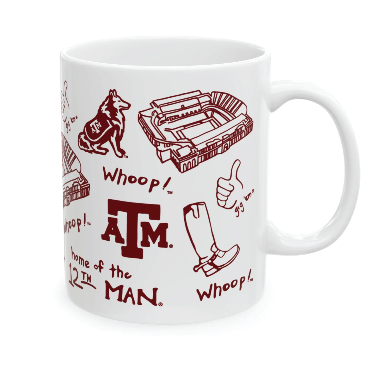Show off your Aggie pride with this officially licensed Texas A&M University elegant 11 oz. porcelain mug, perfect for enjoying your favorite hot beverages. Crafted with high-quality porcelain, this mug combines durability with a sleek design, featuring the official Texas A&M University logo and memorable campus landmarks.