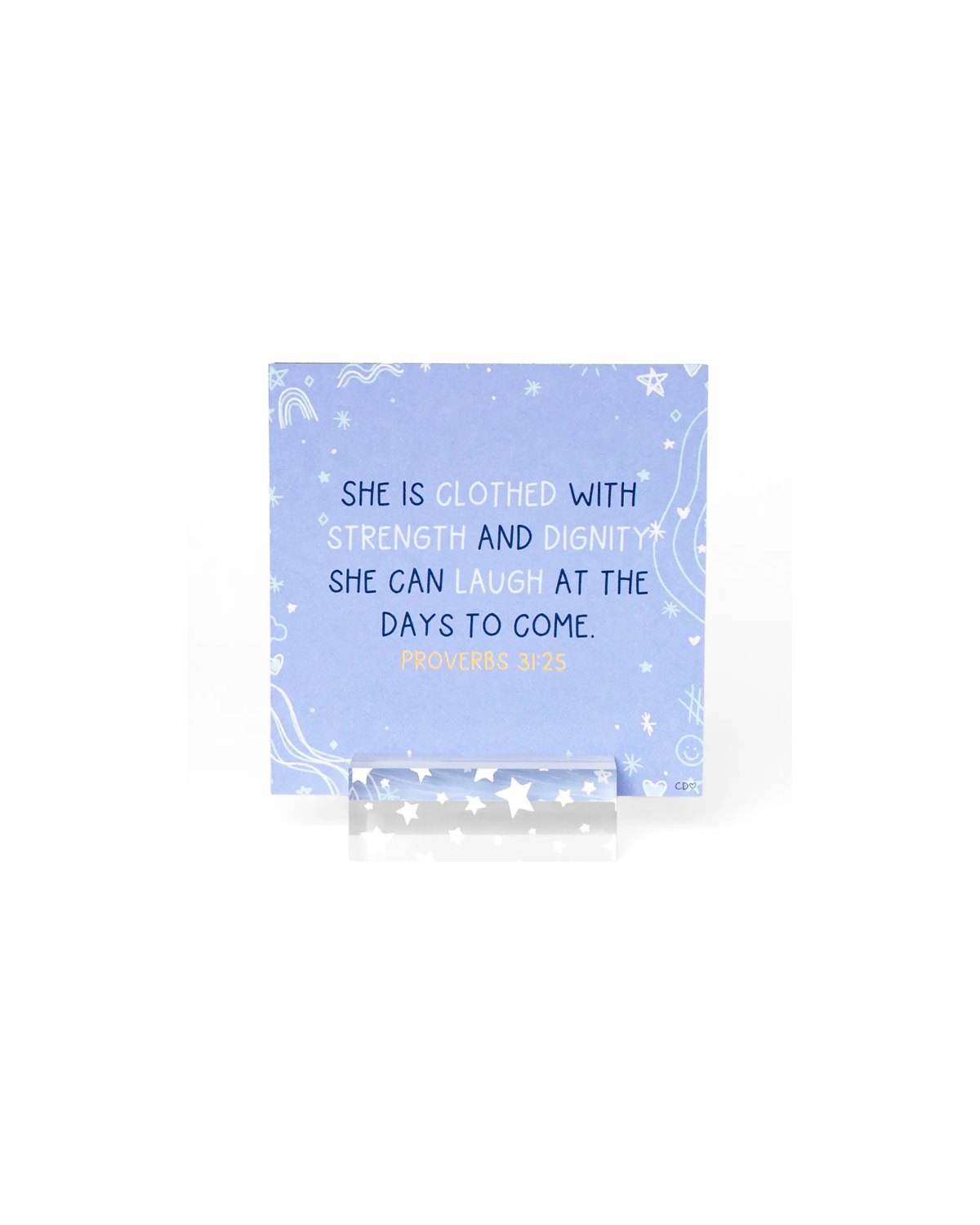 “SHE IS CLOTHED IN STRENGTH AND DIGNITY AND LAUGHS WITHOUT FEAR OF THE FUTURE.” – PROVERBS 31:25