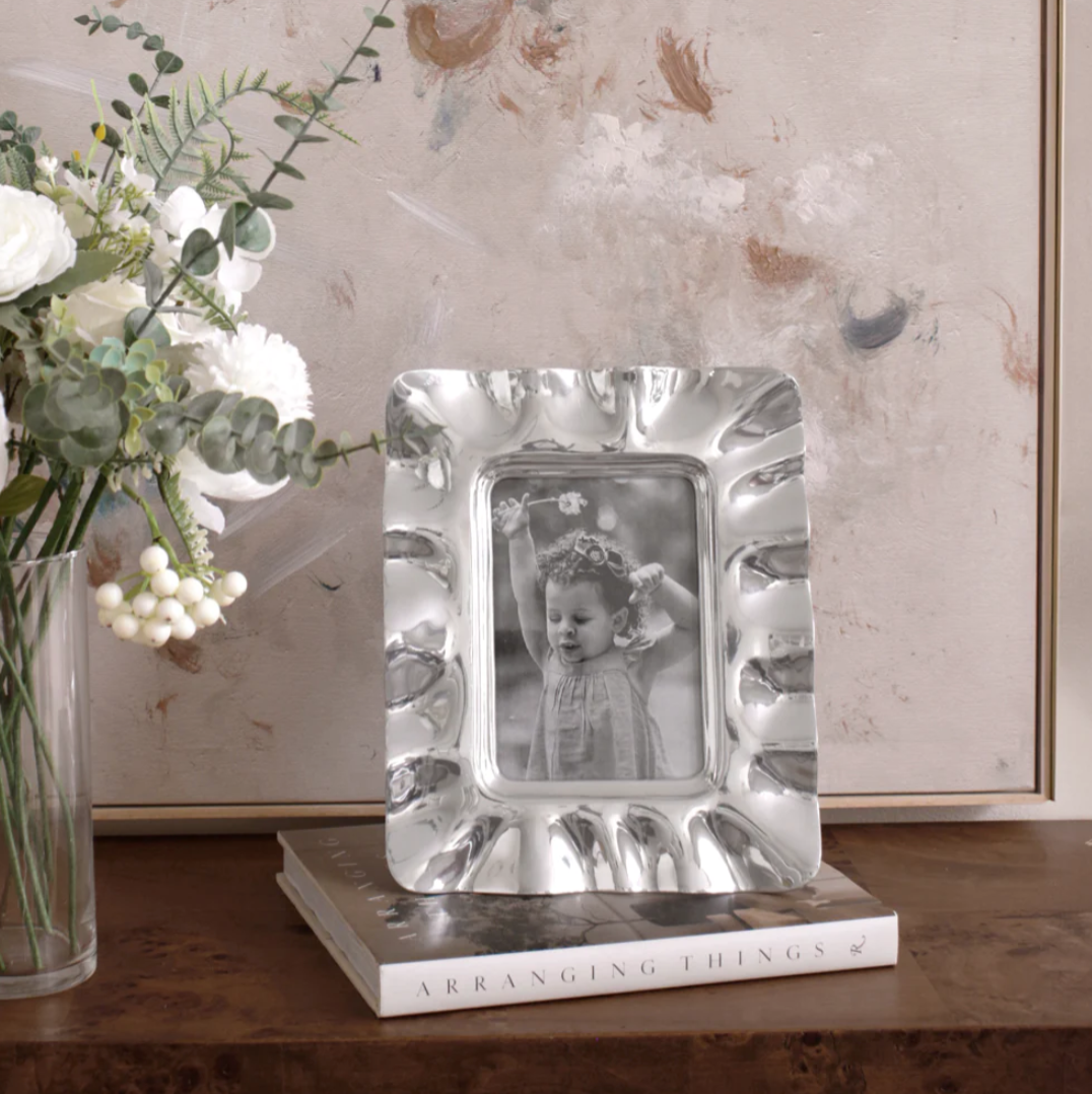 Enduring artisanship. The Beatriz Ball FRAME Vento 5 x 7 decorative frame shows off your favorite photo in shimmering, sophisticated, hand-polished surroundings. Can be displayed vertically or horizontally. Sophisticated styling and superior craftsmanship makes this a perfect gift for someone special. Made of an FDA safe, easy-care, oven and freezer friendly aluminum alloy. Tarnish free.