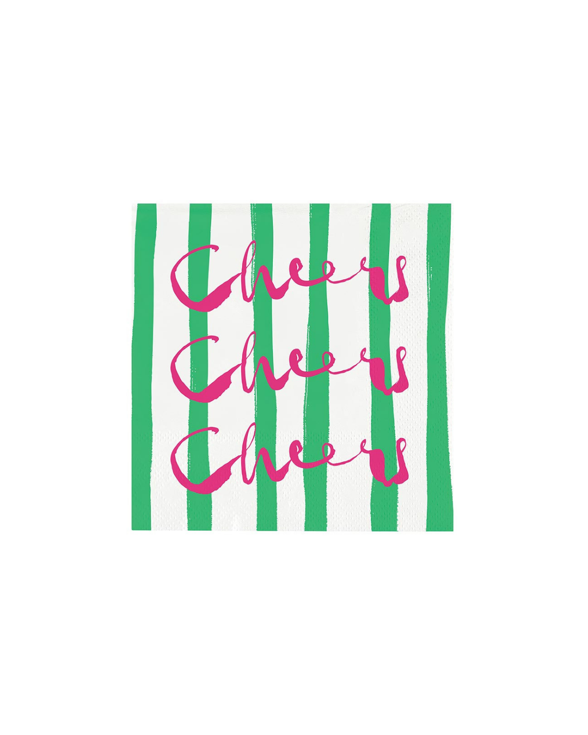 Delight your guests with our "Cheers" napkin set, feautring a colorful green stripe background pattern
