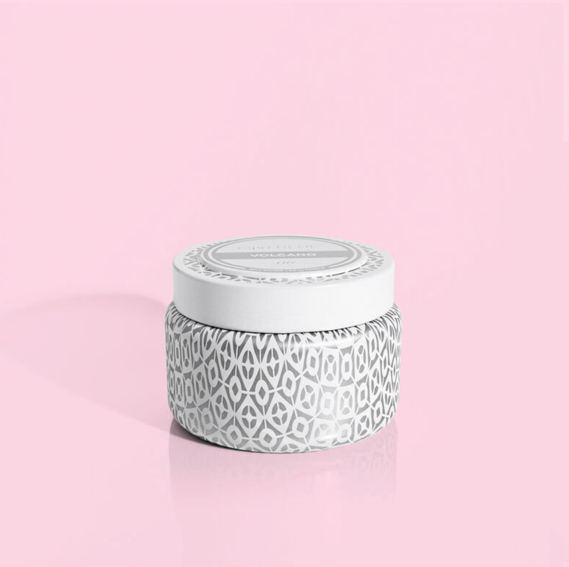 Your go-to travel companion now available in crisp white! This Volcano Printed Travel Tin is perfect for the wanderlust at heart. The candle has a dazzling white and silver design, ensuring that it provides a luxe feel anywhere you place it.
