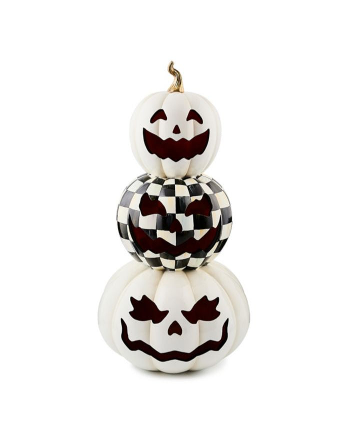 Bring the playful spirit of spooky season to life with the Courtly Check Stacked Illuminated Pumpkins. The stunning set features three pumpkins stacked high, each adorned with signature MacKenzie-Childs patterns and illuminated from within for a glowing effect.