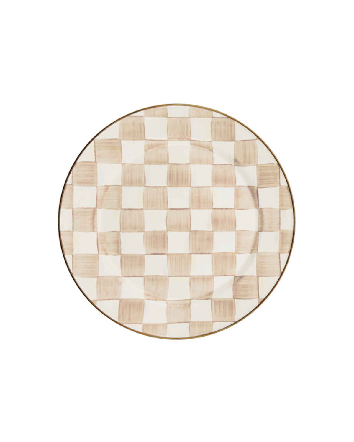 Set a place at the table for our Mocha Check Charger/Plate. Similar in theme to our signature enamel Courtly Check® pattern, Mocha Check features coffee-colored checks that are hand-painted and rimmed in bronzed stainless steel.