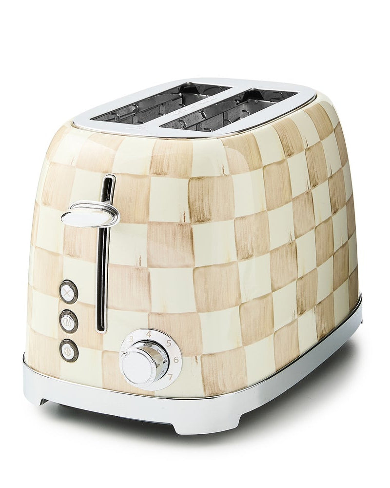 Let's have a toast to appliances that are anything but ordinary with this Mocha Check 2-Slice Toaster! Designed to bring color, pattern, and fun to your kitchen, this stainless steel toaster features our iconic check pattern, making it the perfect addition to your MacKenzie-Childs collection. Pair it with more pieces from the Mocha Check collection, or mix and match with our other beloved patterns to create a kitchen that brightens the everyday.