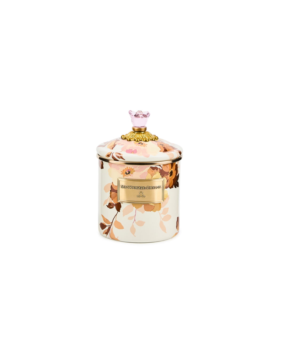 Pantry staples—flour, sugar, and coffee—might seem the most obvious choices with which to fill a Wild Rose White Small Canister, but the possibilities are endless! Keep it in the kitchen with coffee beans and tea bags, cookies and candies, or dog biscuits and birdseed—or invent new uses around the house. Each enameled steel canister is decorated with hand-applied floral transfers and rimmed in bronzed stainless steel.5" dia., 4.75" tall (7.5" tall with lid), 38 oz. capacity