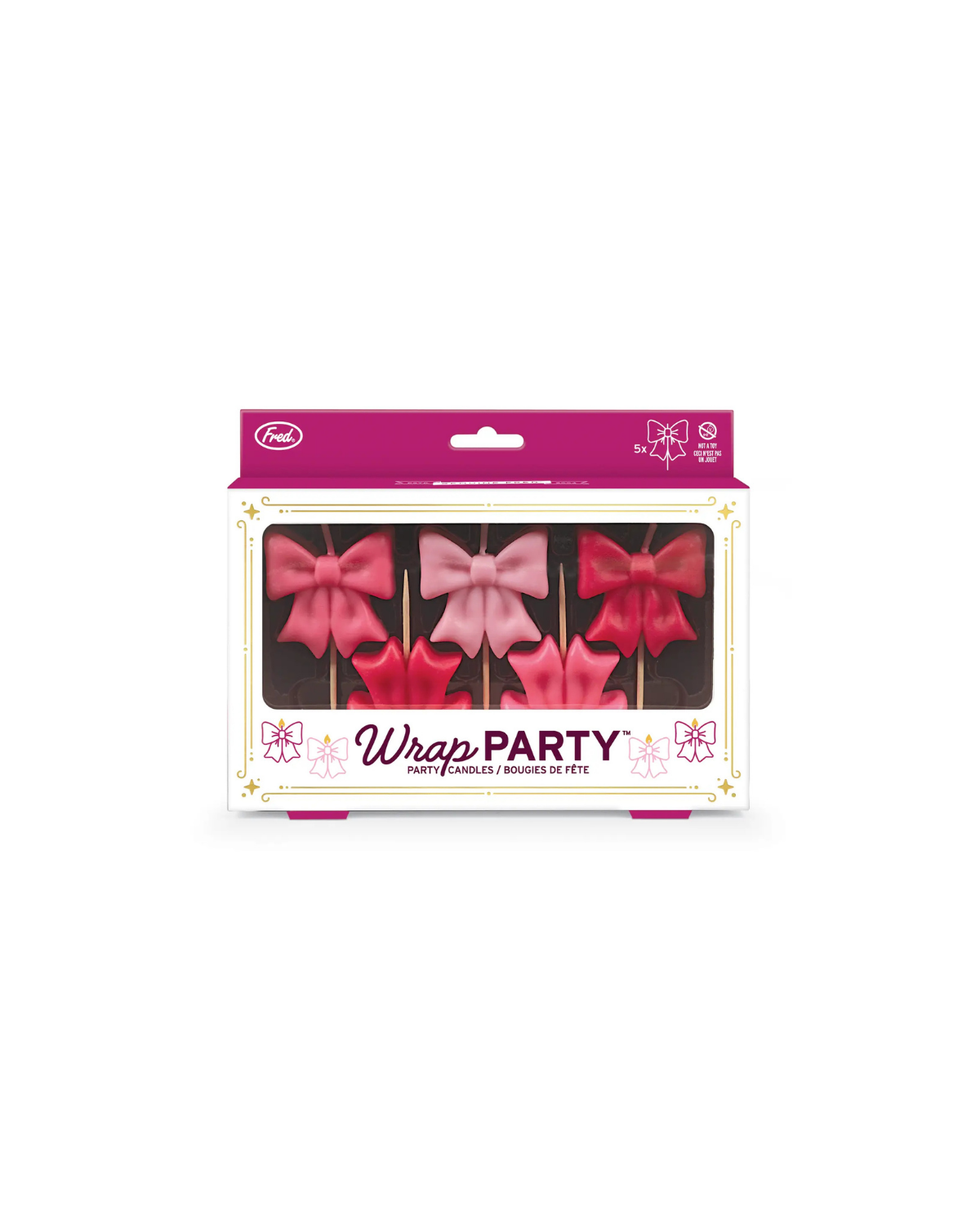 These candles will tie any celebration together! These darling, bow-shaped candles bring a touch of coquettish cuteness to your cake. Each set includes five 2.” tall candles in three rosy hues, mounted on picks for easy placement. They're perfect for birthdays, bachelorettes, or any party that deserves a little extra charm.