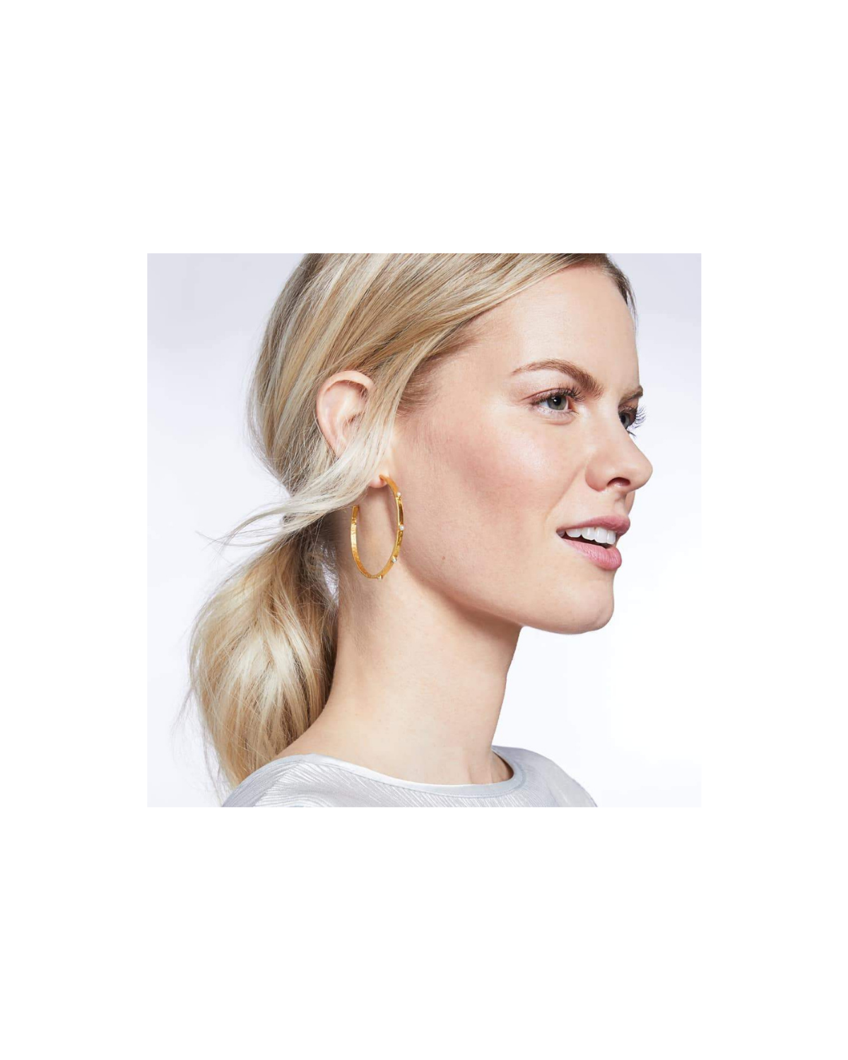 Lightly hammered hoop with Cubic Zirconia accents.