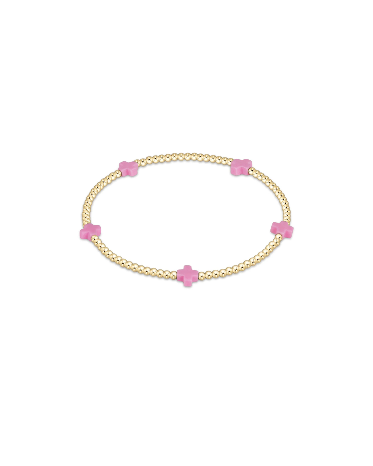 Signature Cross Small Gold Pattern 2mm Bead Bracelet, Bright Pink