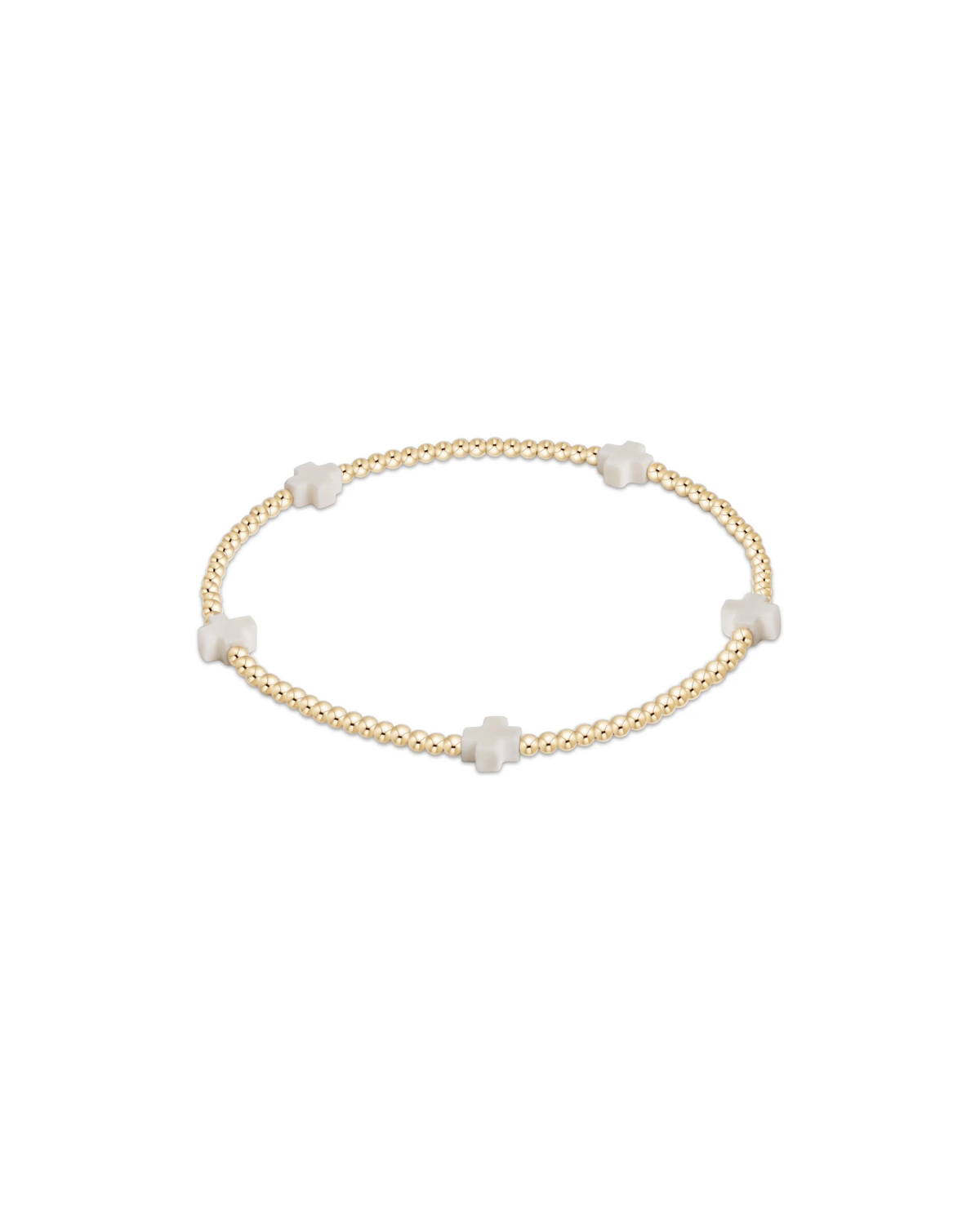 Signature Cross Small Gold Pattern 2mm Bead Bracelet, Off White