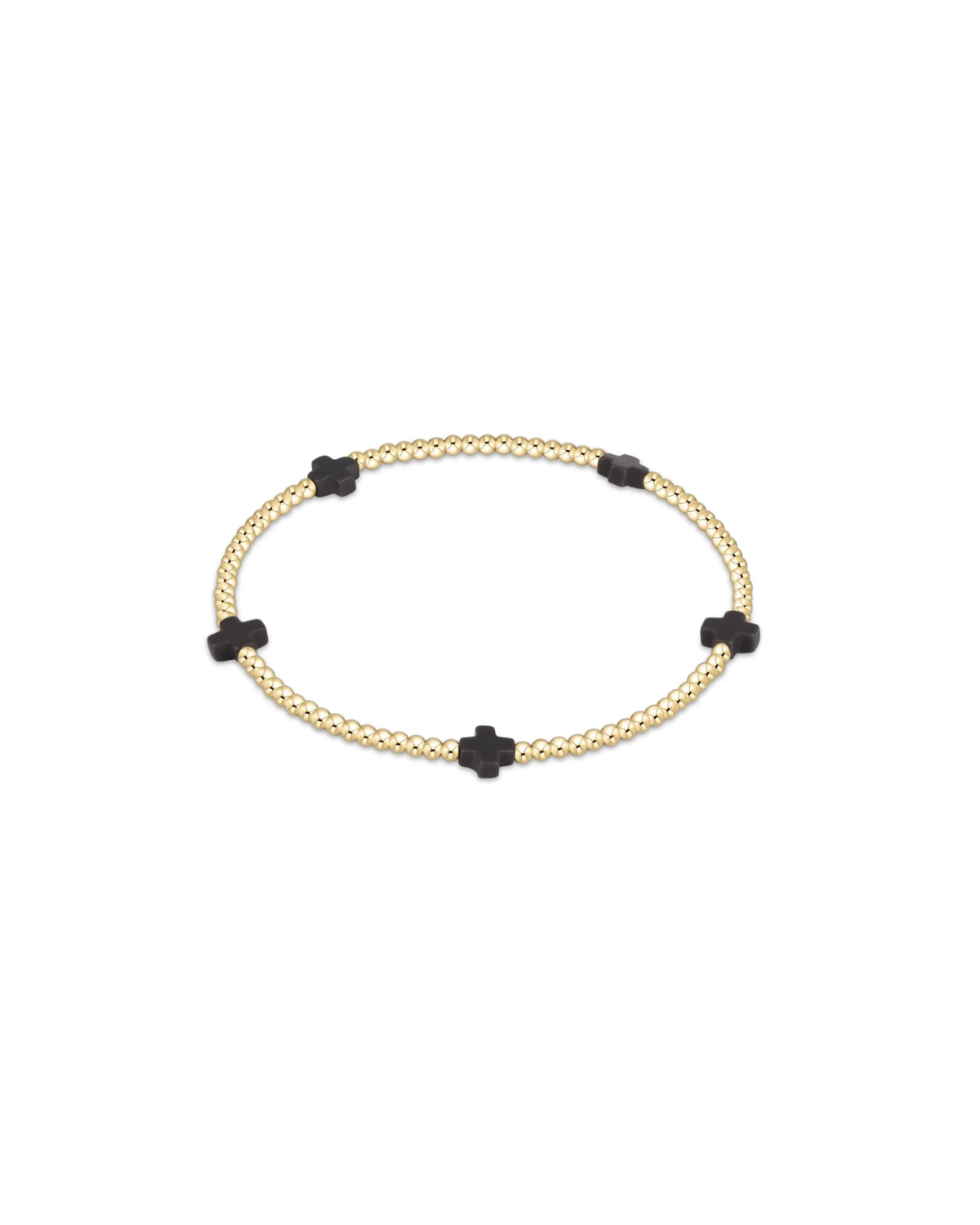 Signature Cross Small Gold Pattern 2mm Bead Bracelet, Onyx