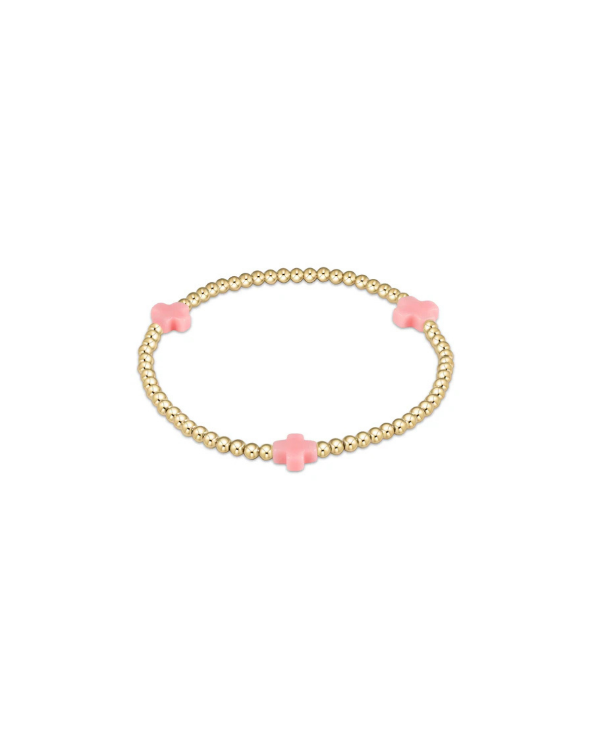 Signature Cross Gold Pattern 3mm Bead Bracelet, Pink
