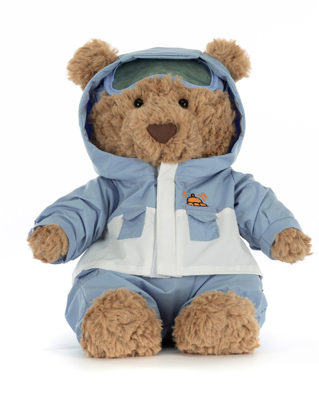 Bartholomew Bear has discovered snowboarding. Sort of. He’s mostly discovered the outfits. Now fully insulated in his fluff-trimmed snowsuit (complete with pretend zip and imaginary lift pass), he’s taken to the slopes in signature style: slow, steady, and with regular dance breaks. He talks a big game – “black runs only” – but his snowboard is mostly for posing, and his goggles have never seen a flake. Still, he looks the part. And for Bartholomew, that’s half the fun. (The other half is fondue.)