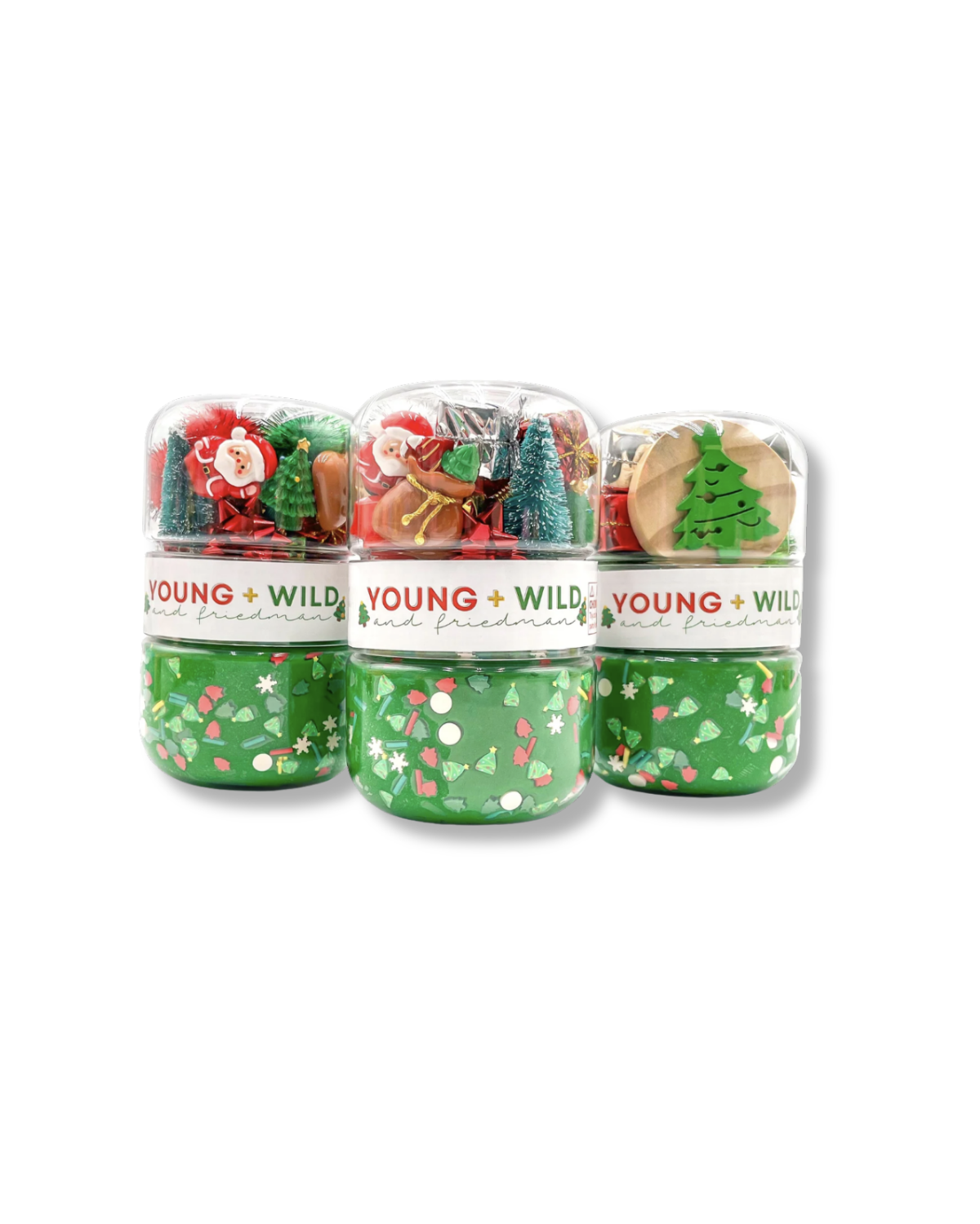 Our Christmas Tree Grab & Go Dough Jar features one side filled with our signature homemade sensory dough and the other packed with themed trinkets for endless imaginative play. Perfect for stockings, party favors, or on-the-go fun!