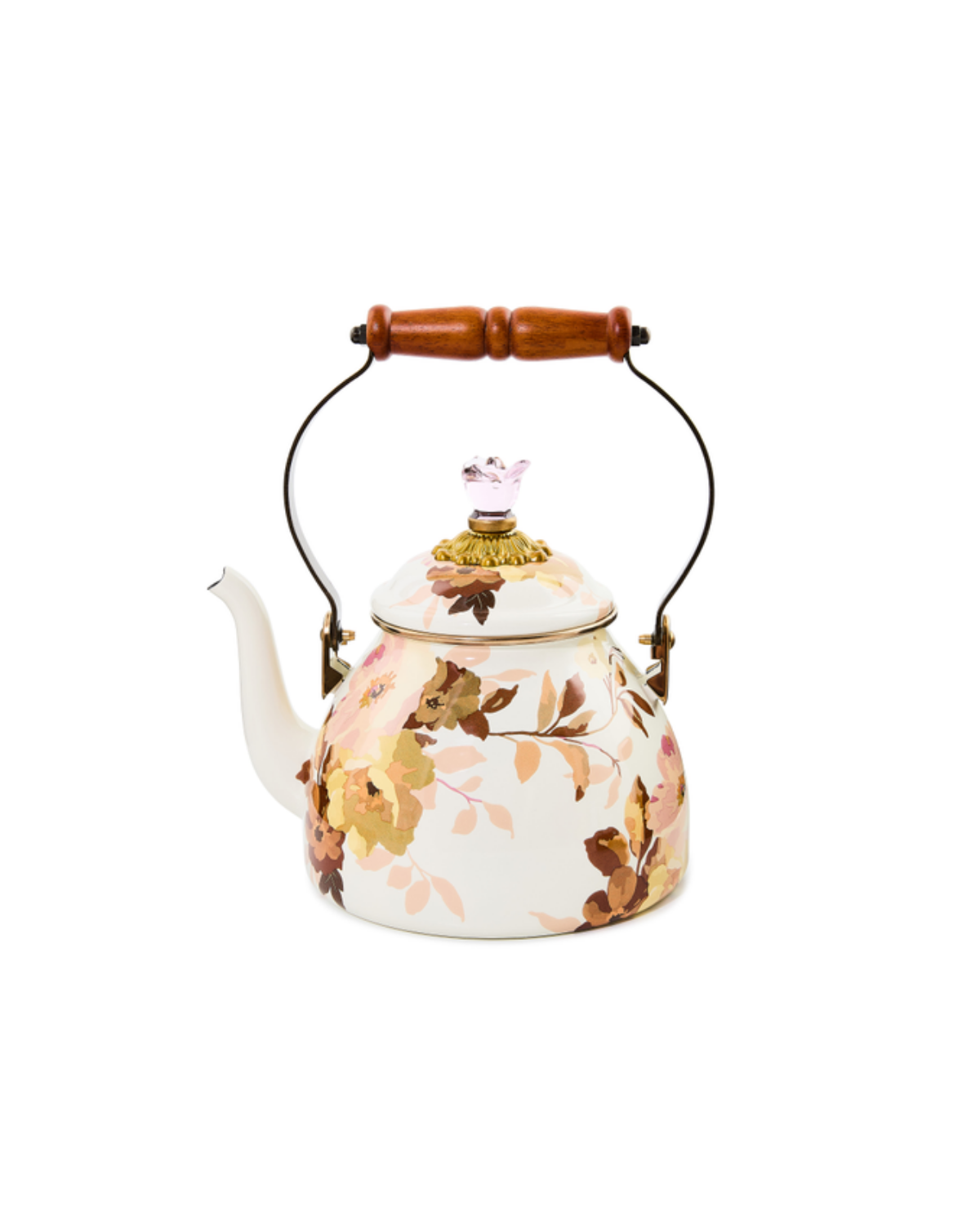 Wild Rose White 2 Quart Tea Kettle