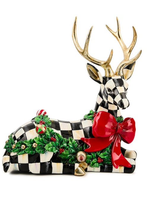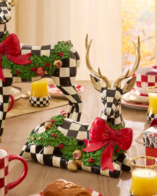 Celebrate the magic of the season with the Holly Check Resting Deer. This whimsical deer, decorated with Courtly Checks, offers a tranquil wintry style, perfect for adding classic charm to your decor.