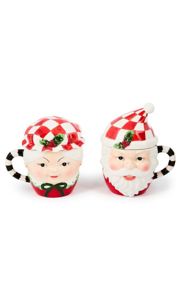 Set Includes: 1 Santa Mug (6"wide, 7"tall, 8oz), 1 Mrs. Claus Mug (6"wide, 6.5 tall, 8oz).