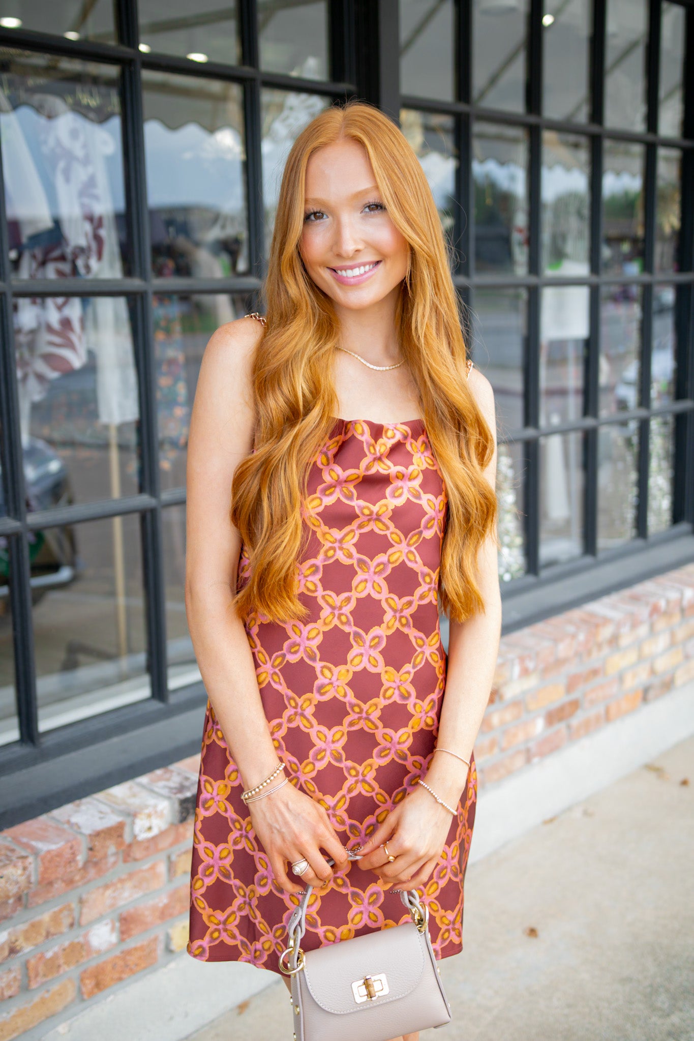 Cinnamon Cider Midi Dress, Beige/Pink Floral