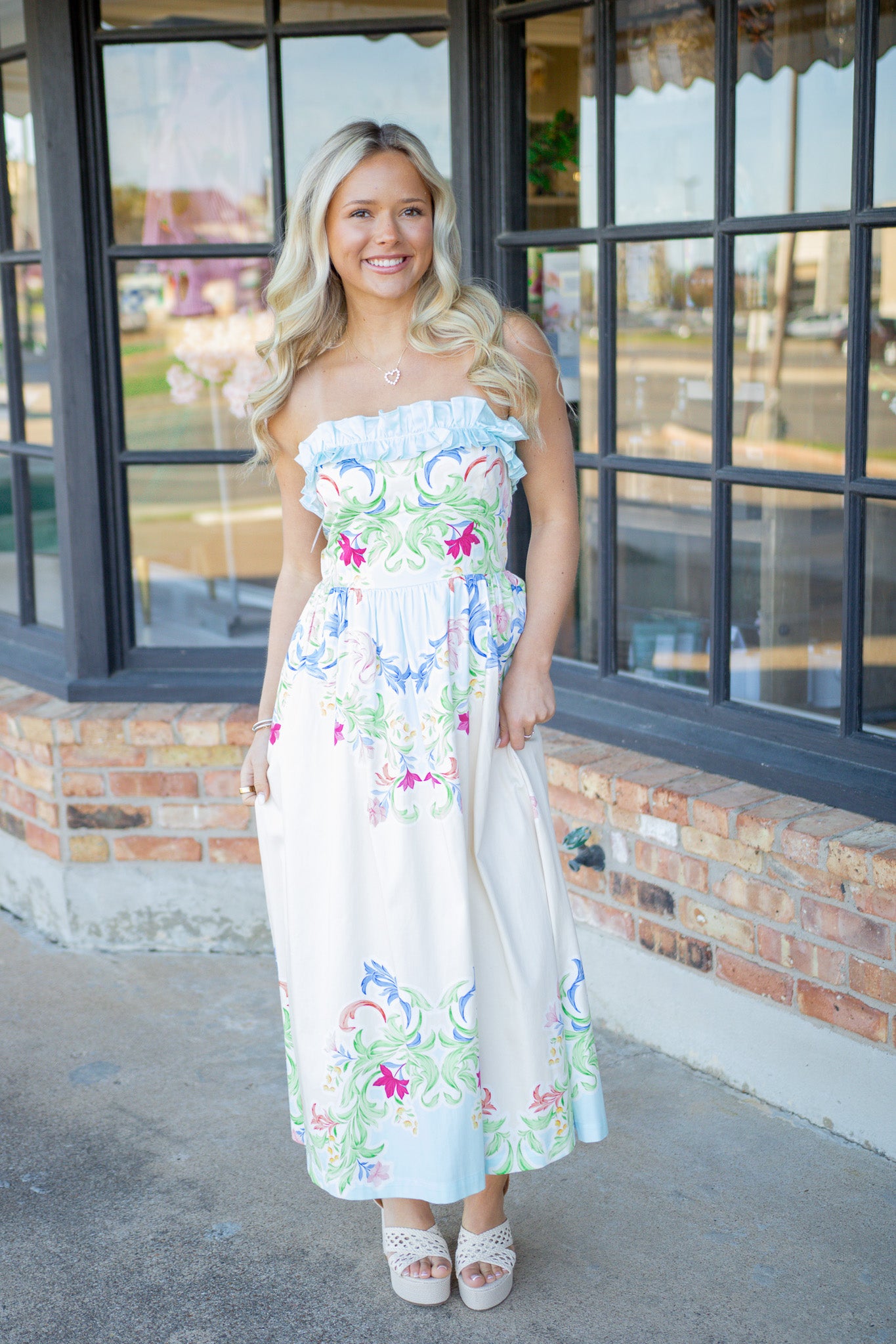 Floral Gambit Midi Dress, Cream Multi