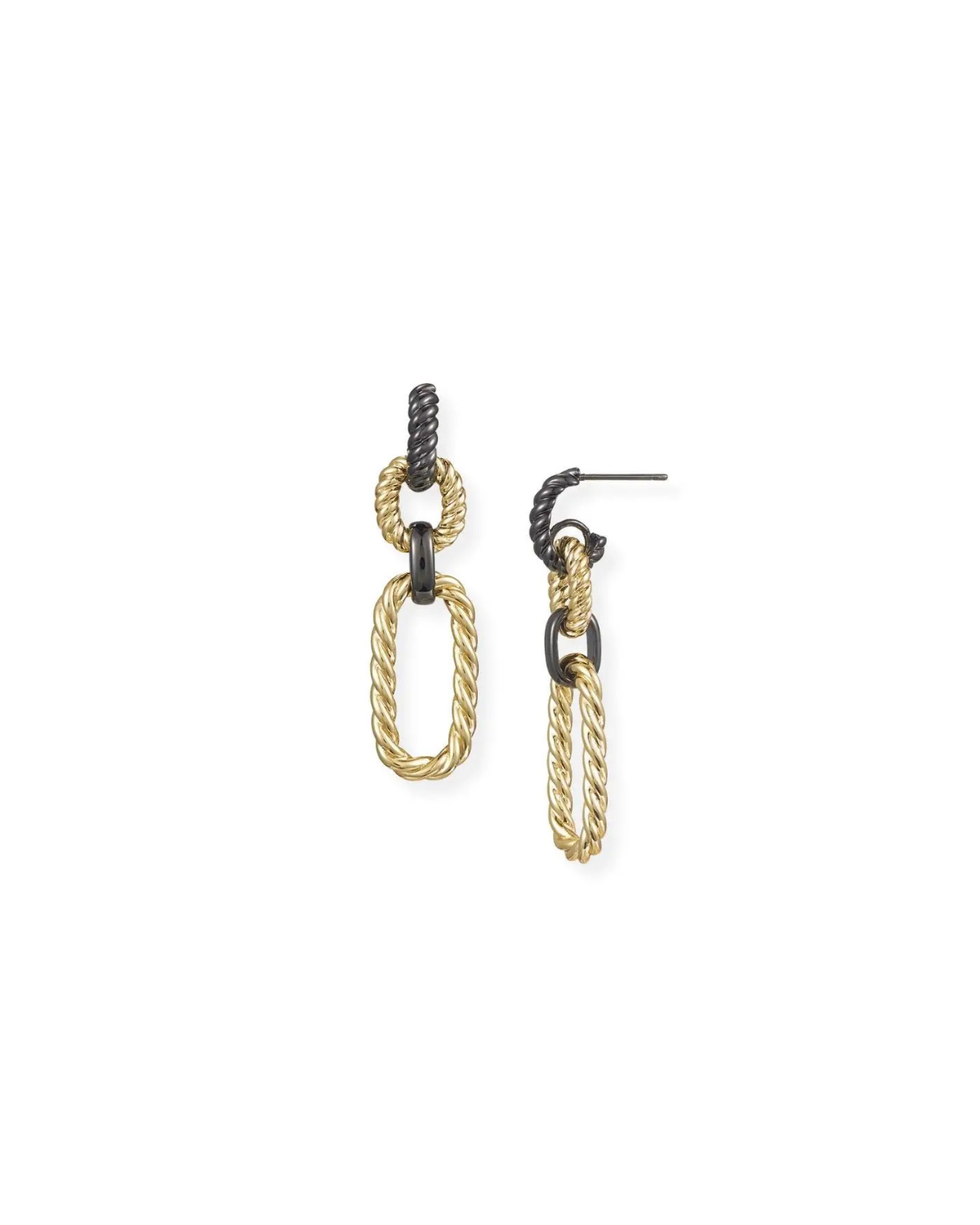 Add elegance to your ensemble with the Legacy Link Statement Earrings in Gold/Black. These dangle earrings from Natalie Wood Designs stand out with their classic and original designs. Each piece begins as a hand-drawn sketch by Natalie, crafted with purpose in their Charlotte, NC studio. Known for her classic aesthetic, these earrings tell a story—rooted in meaning. Created with hypoallergenic, lead-free, and nickel-free materials, and plated in 14k gold, they're not only beautiful but also safe and comfortable to wear.