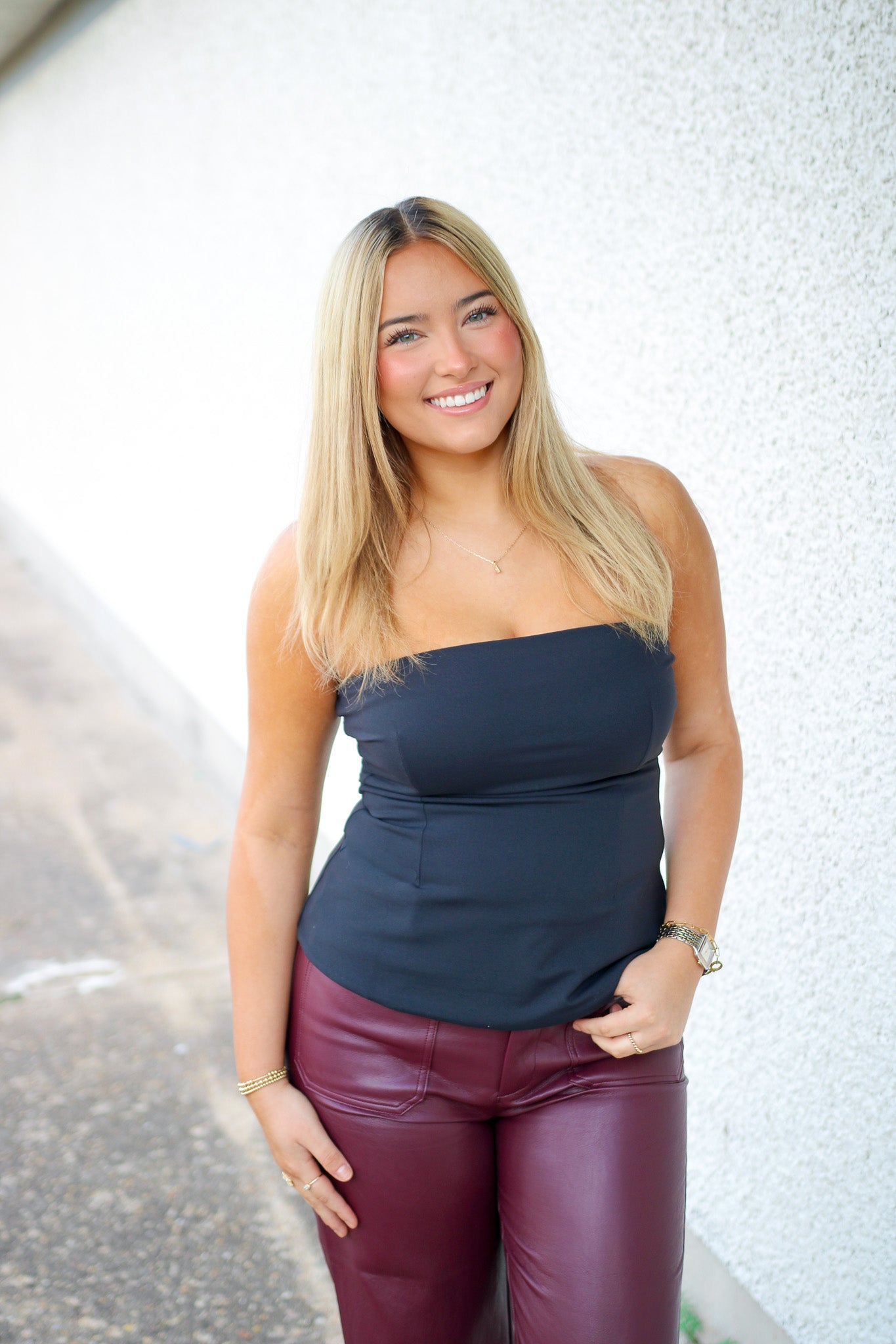 Make your entrance in The After Hours Top, a bold essential for a night on the town. Crafted from a rich, dark black fabric, this tube top is designed to hug your body in all the right places, creating a beautifully sculpted silhouette. It cinches at the waist and subtly flares out, delivering a confident look that's both flattering and fun. This is the top you reach for when you're ready to make a statement after the sun goes down.