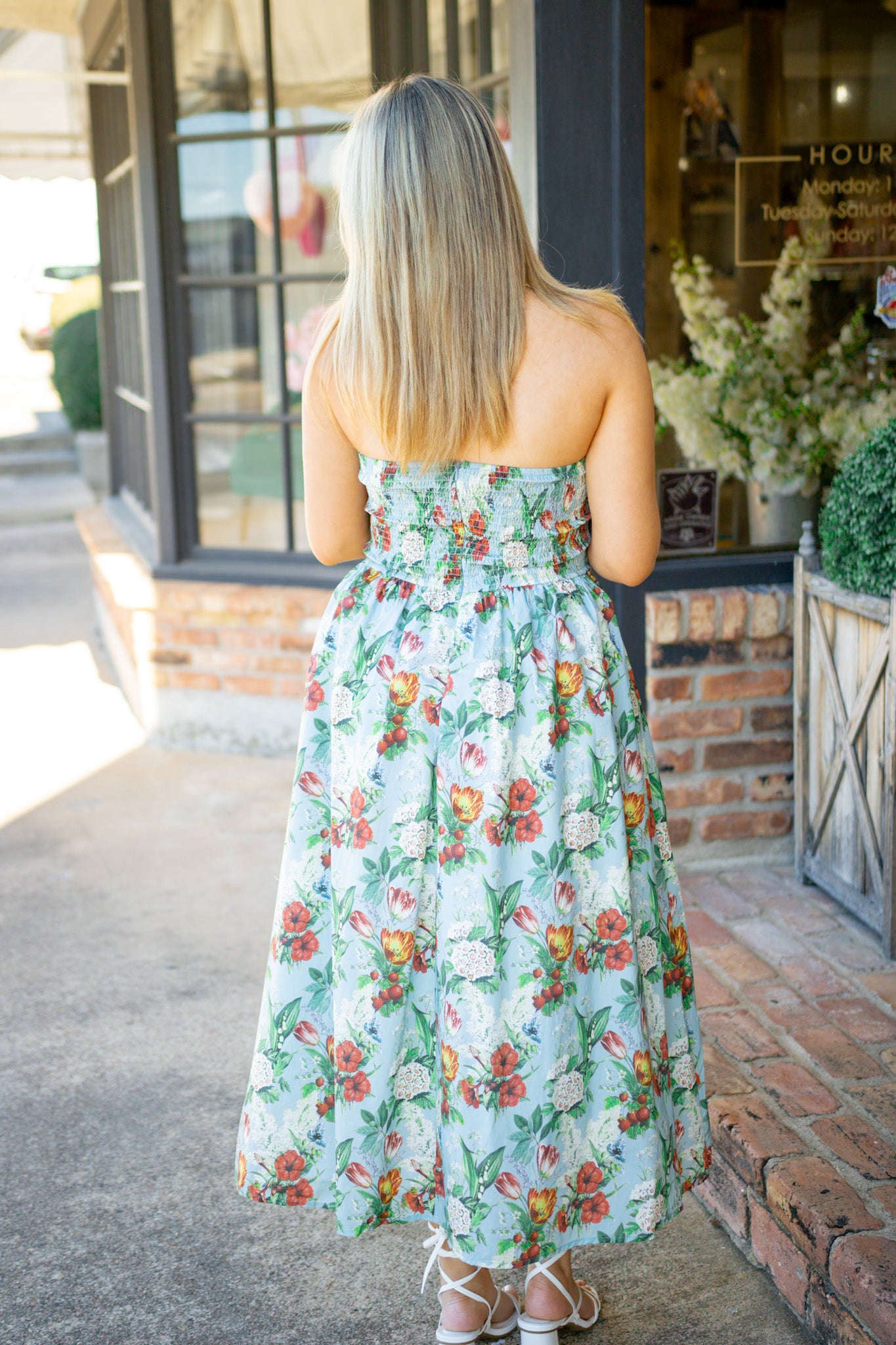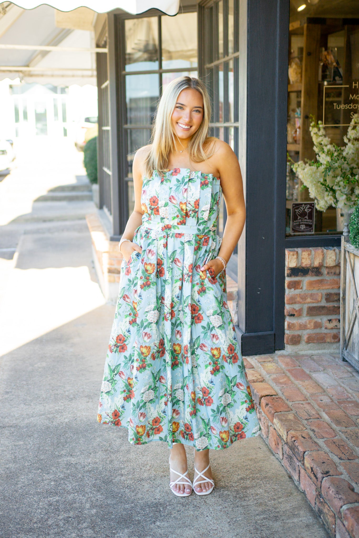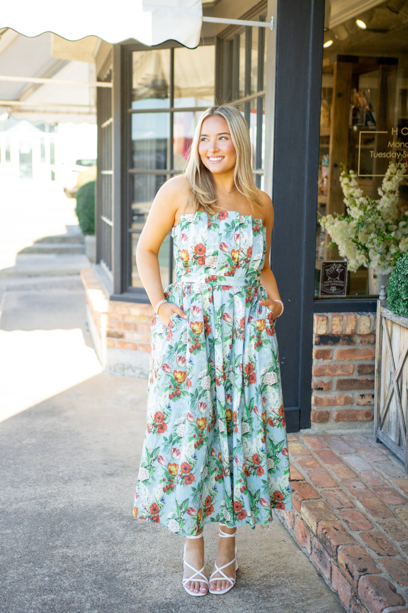 Turn heads in the Everlasting Love Dress, where dramatic pleats meet effortless elegance. This strapless stunner features a smocked back for a flattering fit, hidden side pockets for practicality, and a gorgeous floral pattern that blooms in rich blue. Perfect for garden parties, weddings, or any occasion calling for a touch of romance and drama.