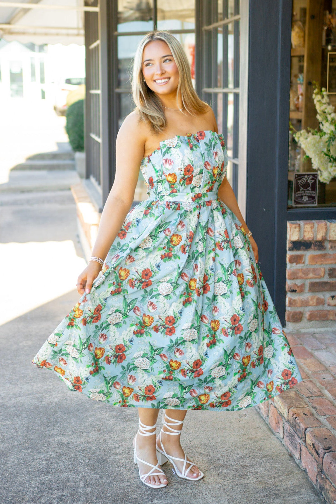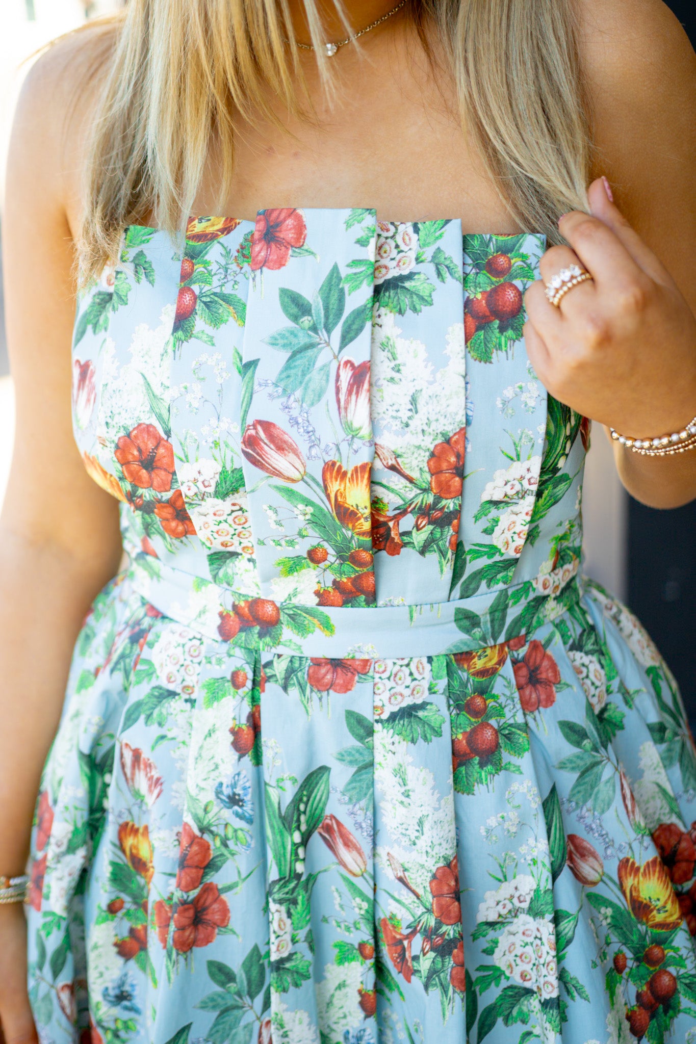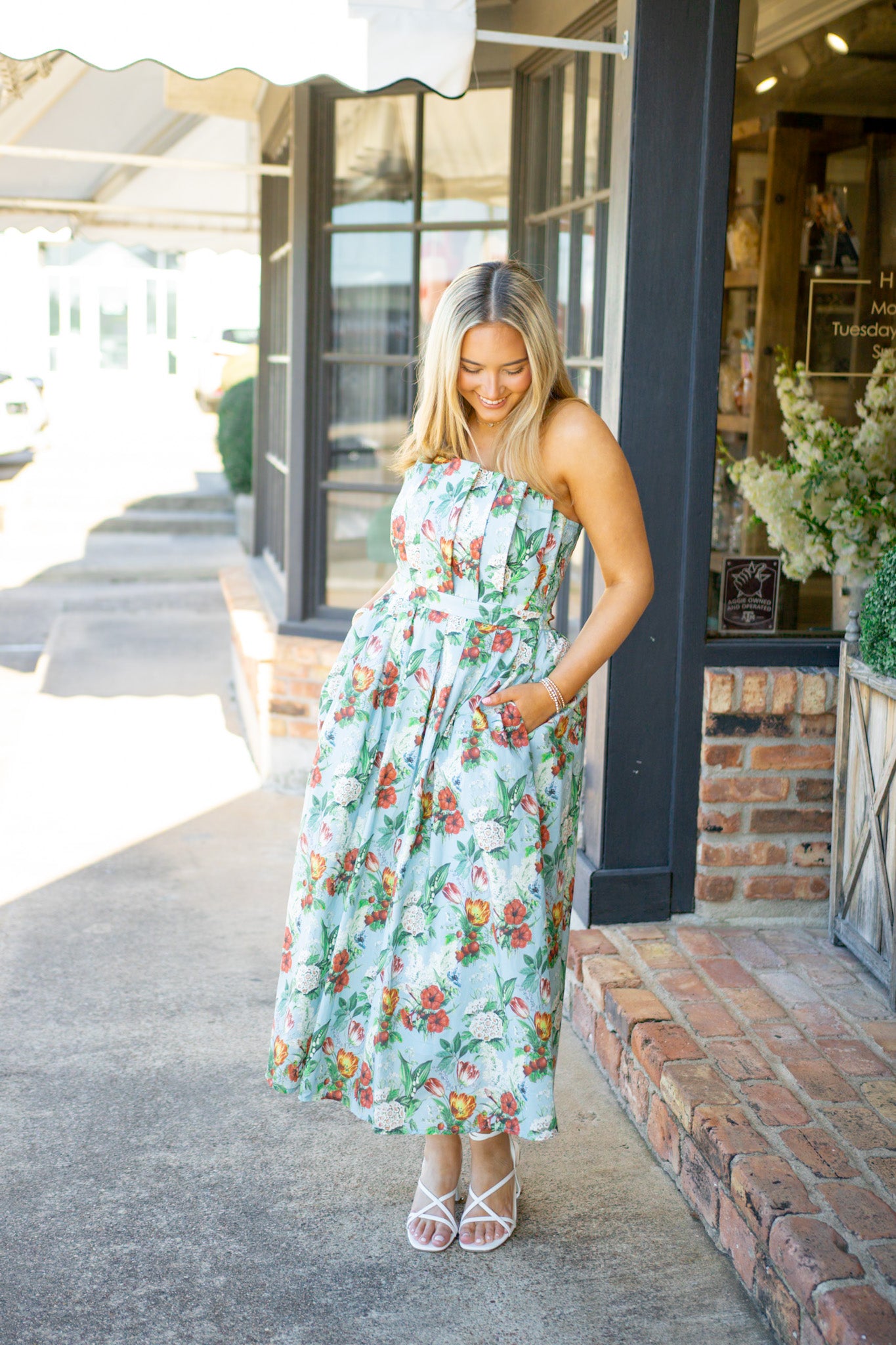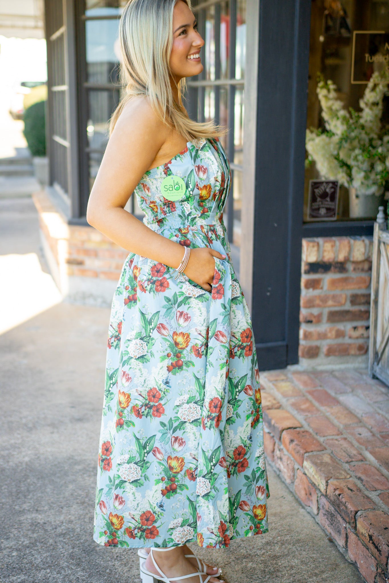 Turn heads in the Everlasting Love Dress, where dramatic pleats meet effortless elegance. This strapless stunner features a smocked back for a flattering fit, hidden side pockets for practicality, and a gorgeous floral pattern that blooms in rich blue. Perfect for garden parties, weddings, or any occasion calling for a touch of romance and drama.