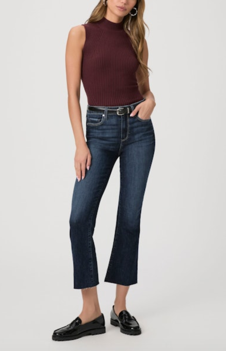This high-rise cropped flare is slim through the hip and thigh with a kick flare below the knee that finishes above the ankle. Cut from our TRANSCEND VINTAGE denim in a timeless vintage-inspired dark wash with lived-in details and a raw hem, this pair has the look of authentic vintage denim but is incredibly comfortable with plenty of stretch and recovery.