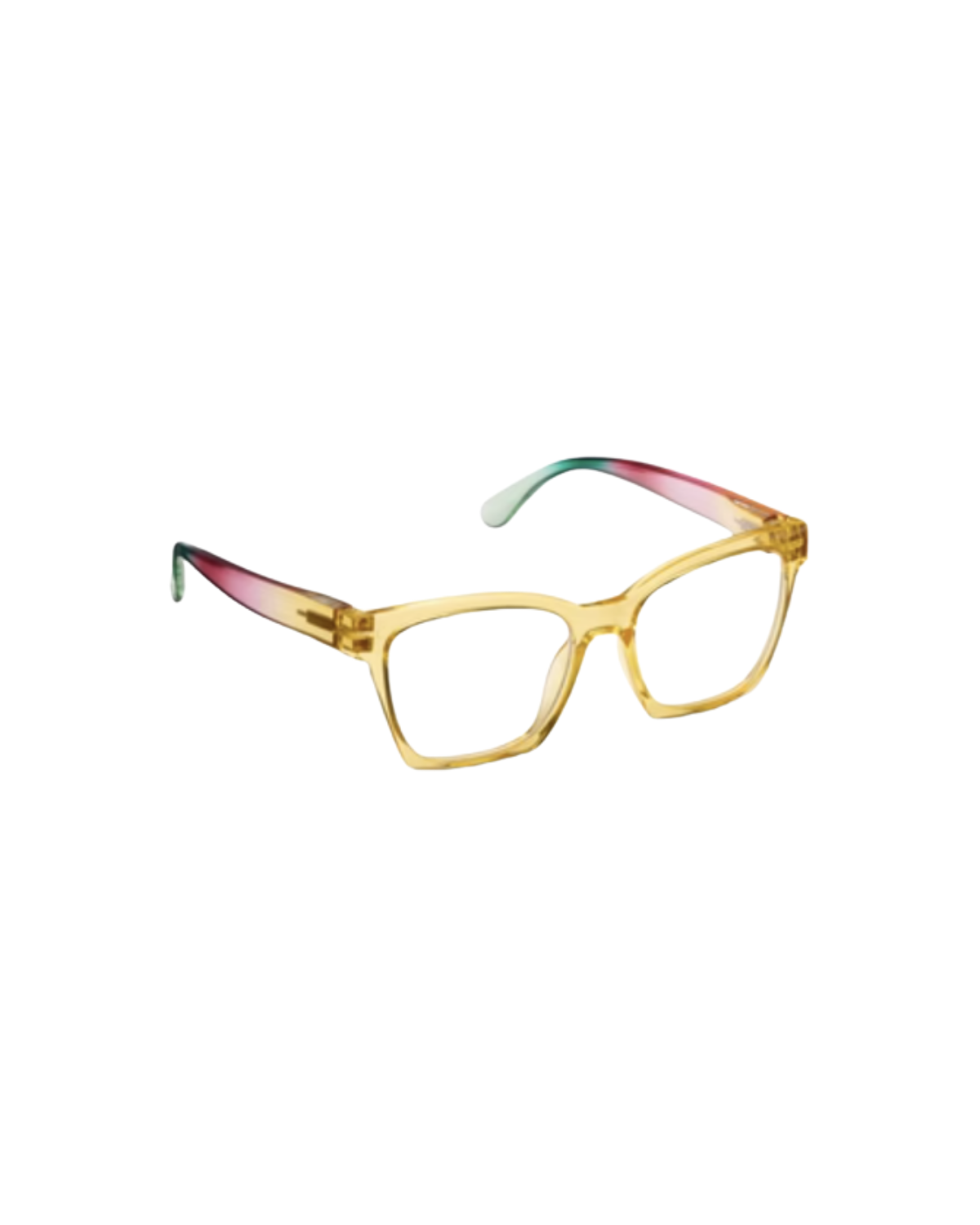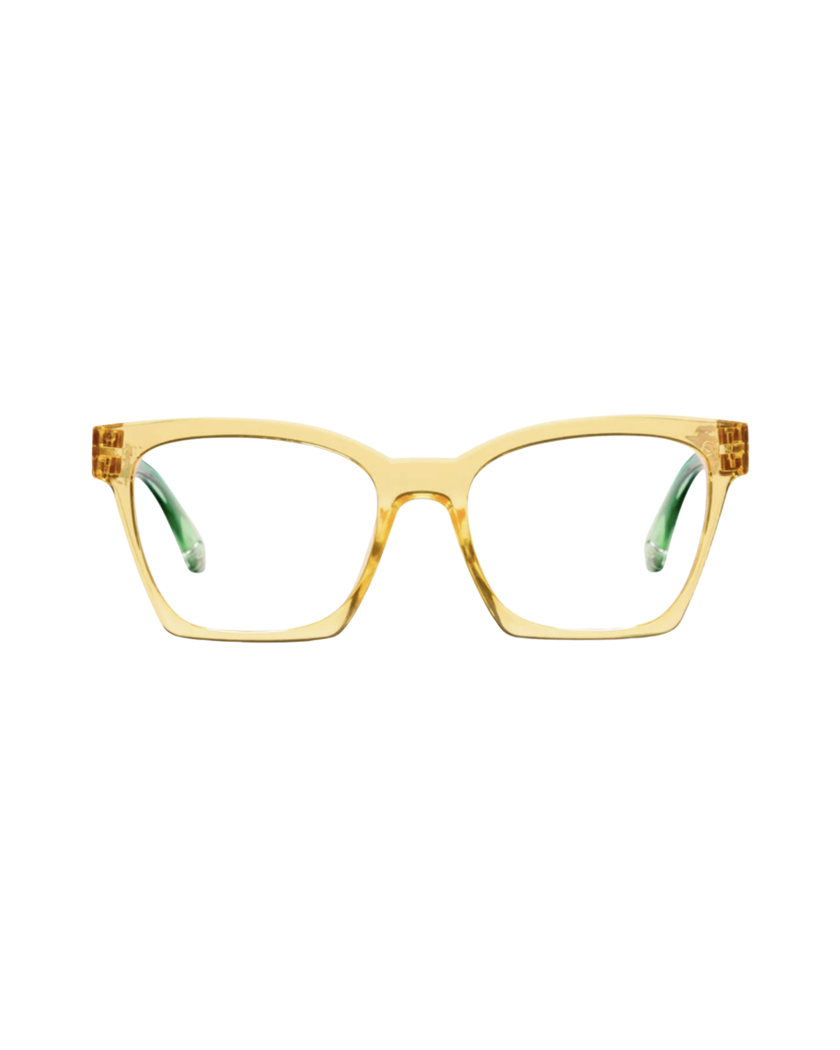 Why blend in when you could stand out? Maisie is a one-of-a-kind pair that makes a bold statement. While the classic square shape may be traditional, everything else about these frames is anything but. Choose the bright, translucent yellow fronts with colorful ombre temples, or opt for the blue fronts with a bold ikat pattern on the side.