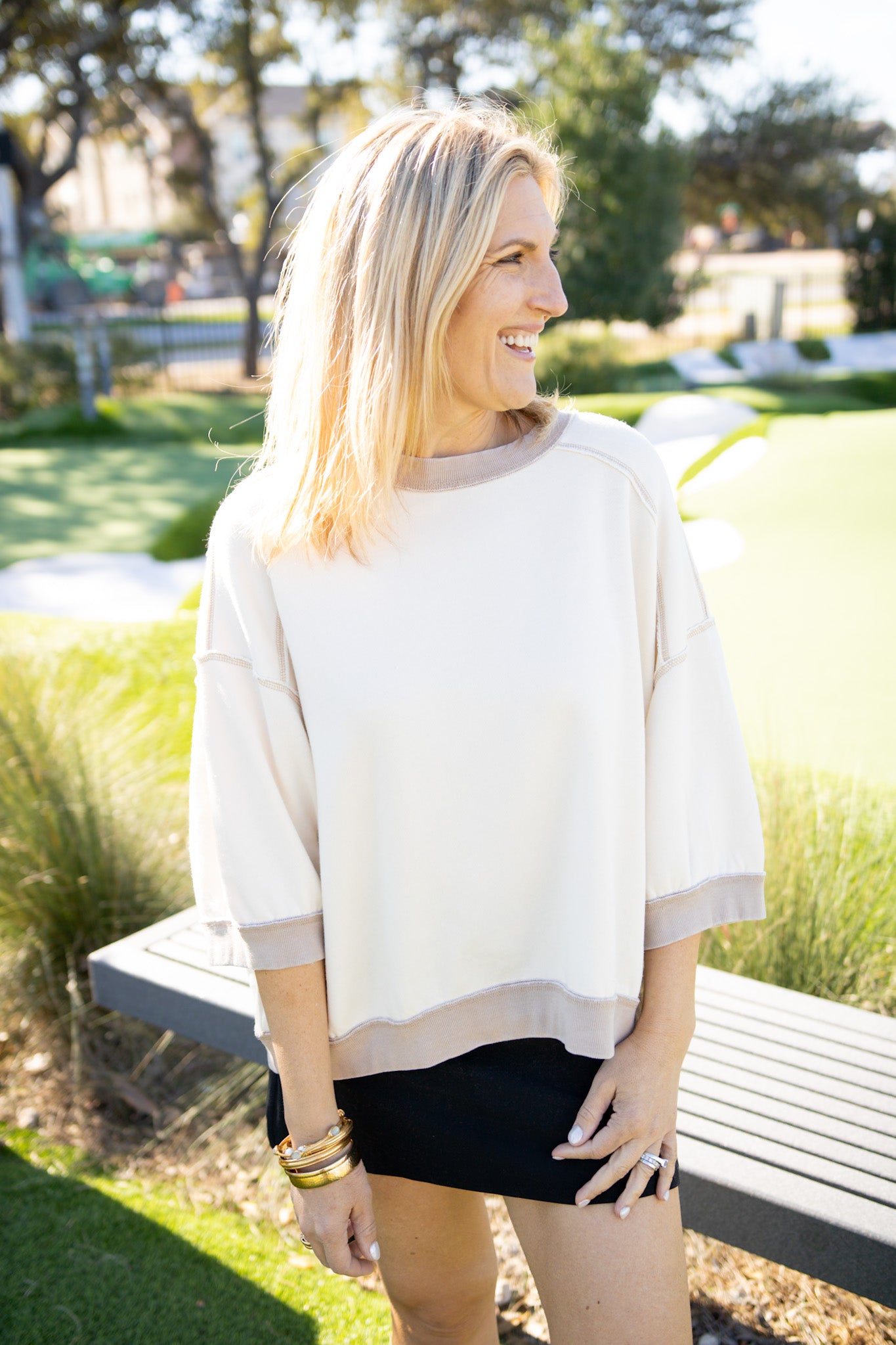 Easy Like Sunday Morning Striped Skort, Cream/Black