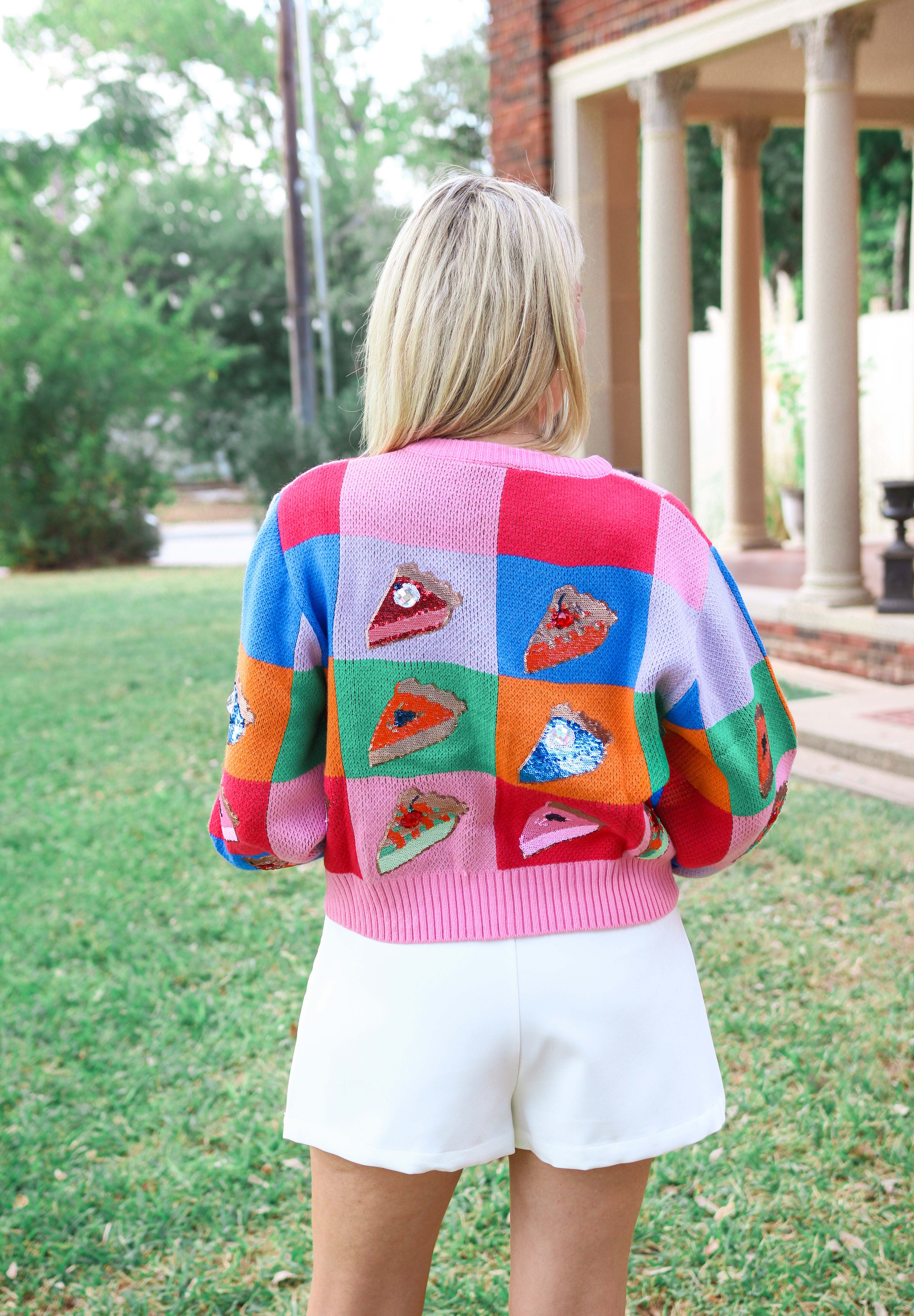 Colorblock Piece of Pie Button Up Sweater, Rainbow