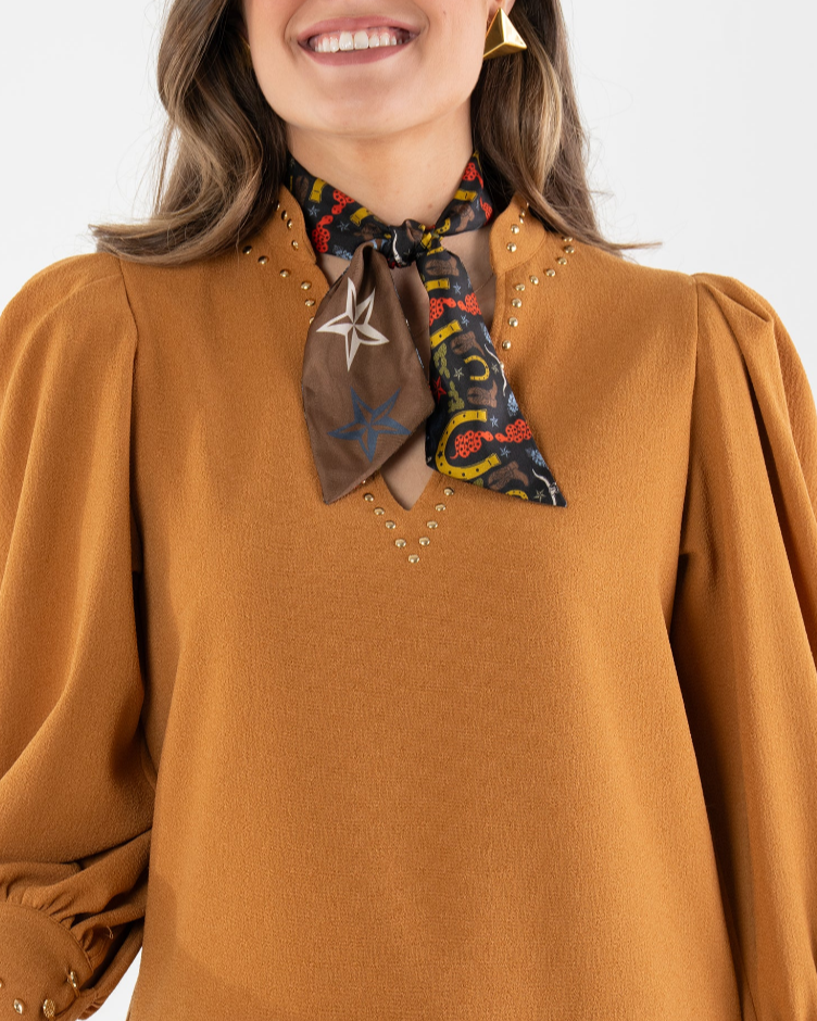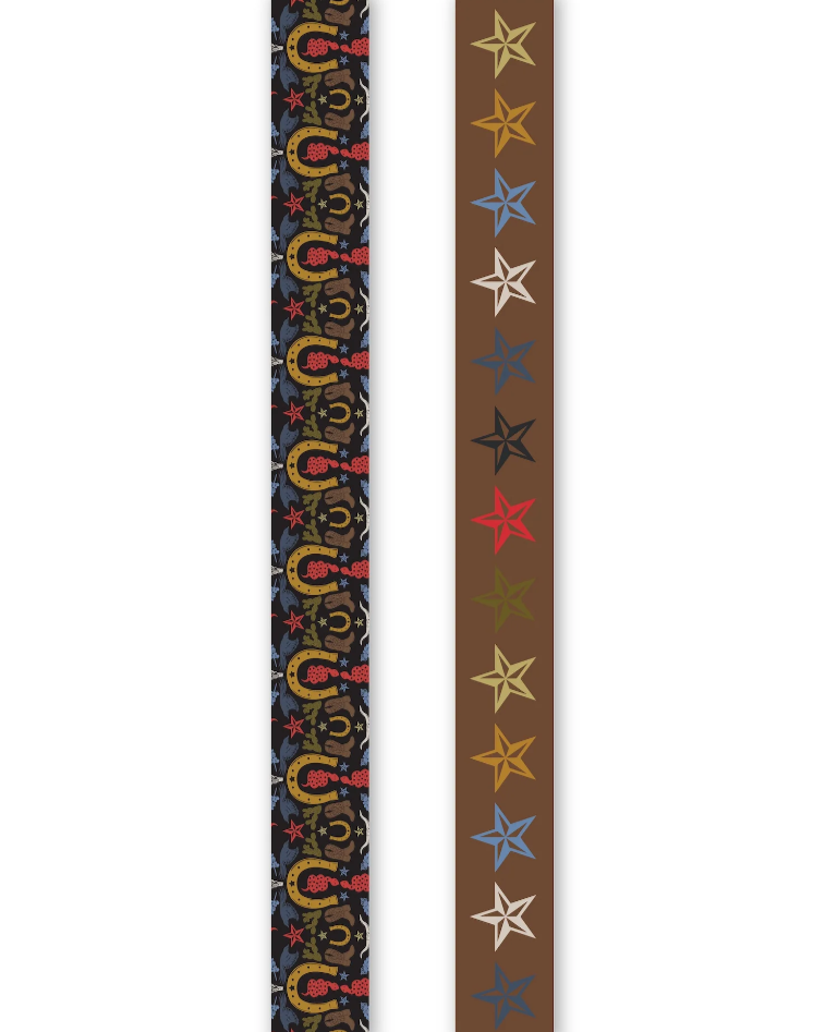 The Lone Star Scarfette is a versatile skinny silk twill scarf that captures the spirit of Texas in a modern way. One side highlights a collage of western icons—horseshoes, boots, snakes, stars, and bluebonnets—while the reverse showcases rows of bold Texas stars. Its double-sided design gives you multiple styling options, whether tied at the neck, wrapped on a bag, or worn as a hair accessory. Crafted in 100% silk, it’s a collectible piece that balances heritage with a chic edge.