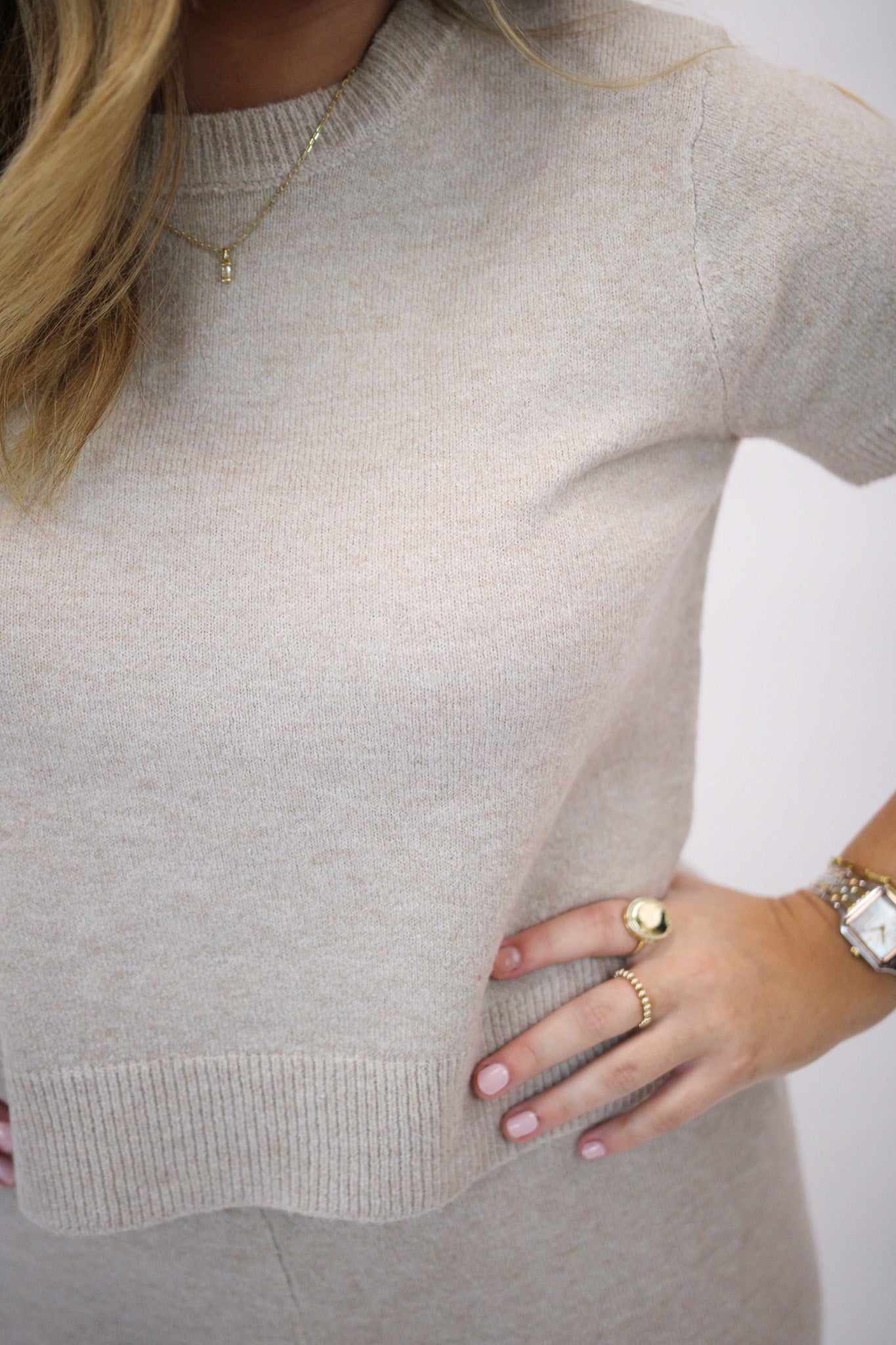 Cozy meets cool in this taupe knit set! Featuring a short sleeve crop sweater that's perfect for layering or solo styling, paired with comfy jogger pants designed for all-day wear. It's the playful outfit your wardrobe didn't know it needed.