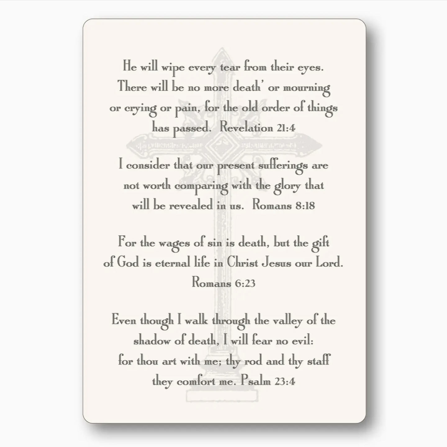 Maison de Papier presents 'Verses for Grief,' a set of 8 thoughtfully curated religious cards designed to provide comfort and solace during times of loss. Each card offers meaningful words to help navigate grief and bring a sense of peace. Perfect for sending a heartfelt message to a loved one or keeping as a personal source of strength, these cards are a touching reminder of compassion and support.