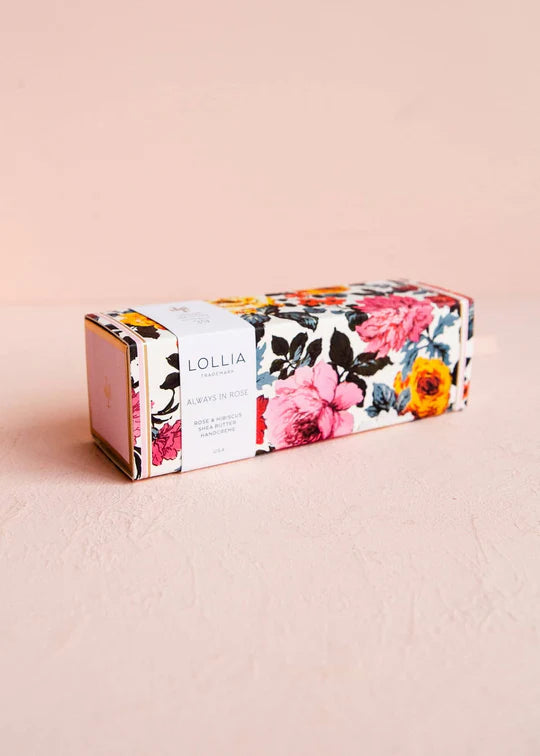 Rich with botanically lush ingredients, Lollia's Always in Rose Shea Butter Handcreme blends Macadamia Nut and Avocado Oils to comfort and soothe your skin. Beneficial hydrating extracts of Aloe and Shea Butter lightly moisturize while delicate infusions of blushing Rose, Hibiscus & warm Amber add a whisper of fragrance to this luxurious cream. Absorbs quickly to leave skin petal-soft.