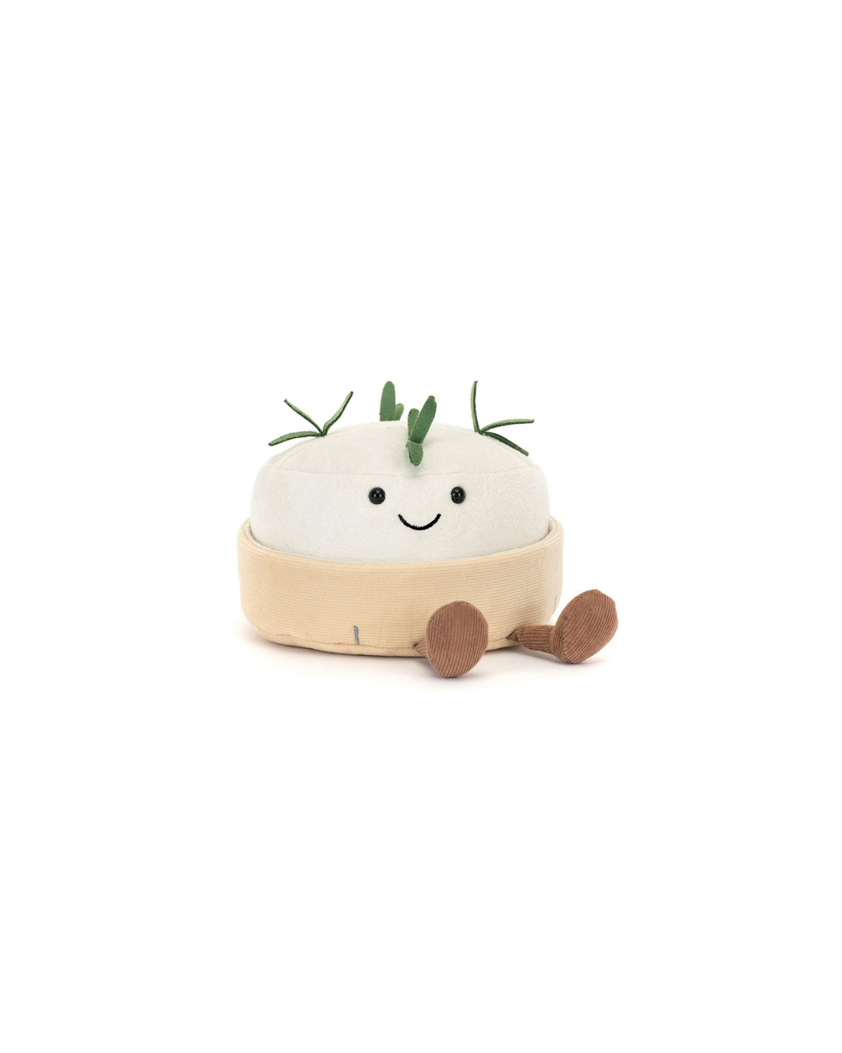 Amuseables Camembert is here to spread cheesy joy. This cream suedette cheese has stitched rind detail, and is topped with sprigs of suedette rosemary. Nestled in its fine cord container with staple detail, this smiling cheese can be taken out of its box for foodie hugs. The perfect gift for any foodie friend.