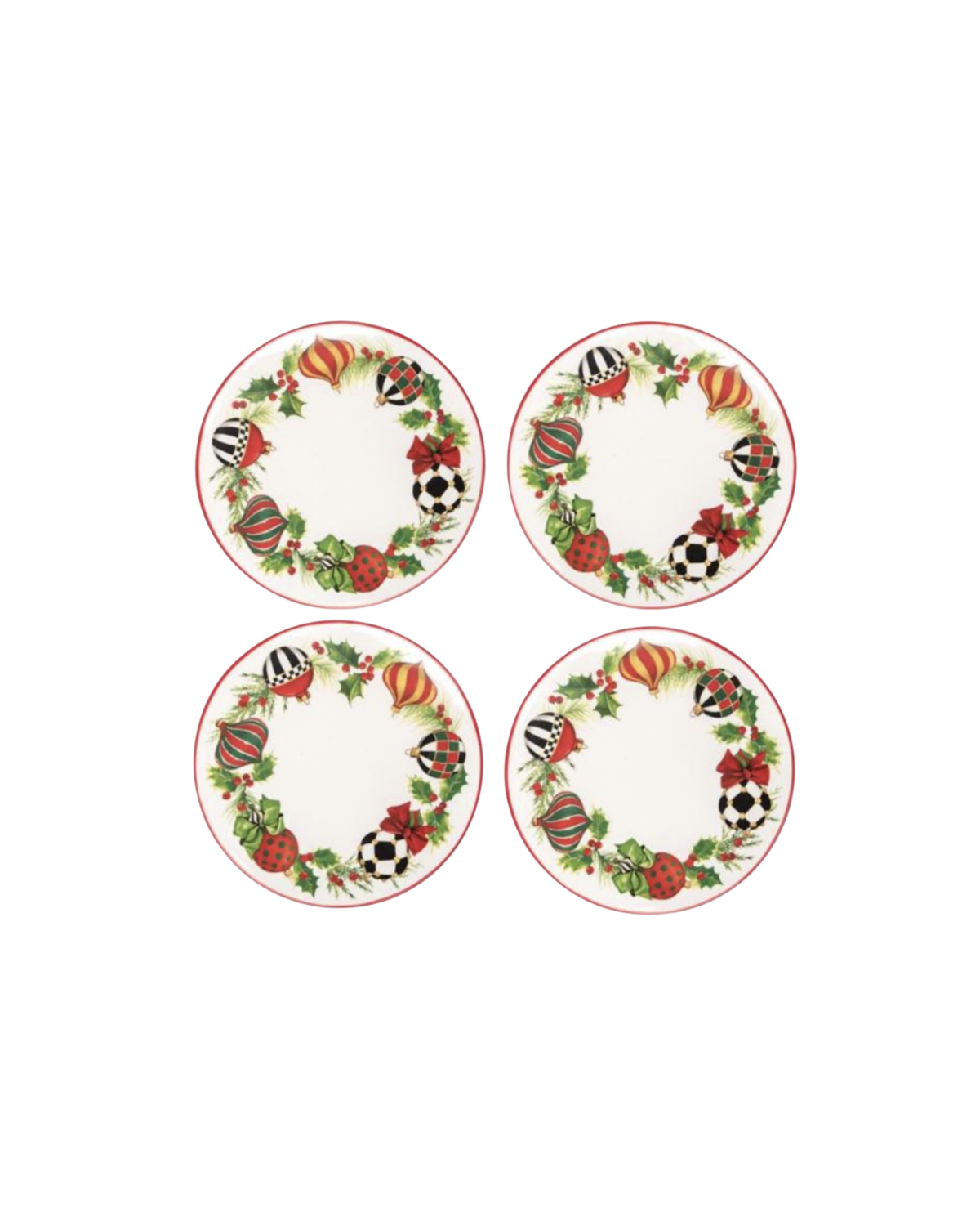 Top your table with the holiday cheer of our set of four Deck the Halls Salad Plates. Made of dishwasher- and microwave-safe stoneware, they feature a hand-applied holiday print, accented with hand-painted banding. Functional and fun, they’re ready to serve and add a seasonal pop of color. Try mixing and matching them with your existing Courtly Check®.